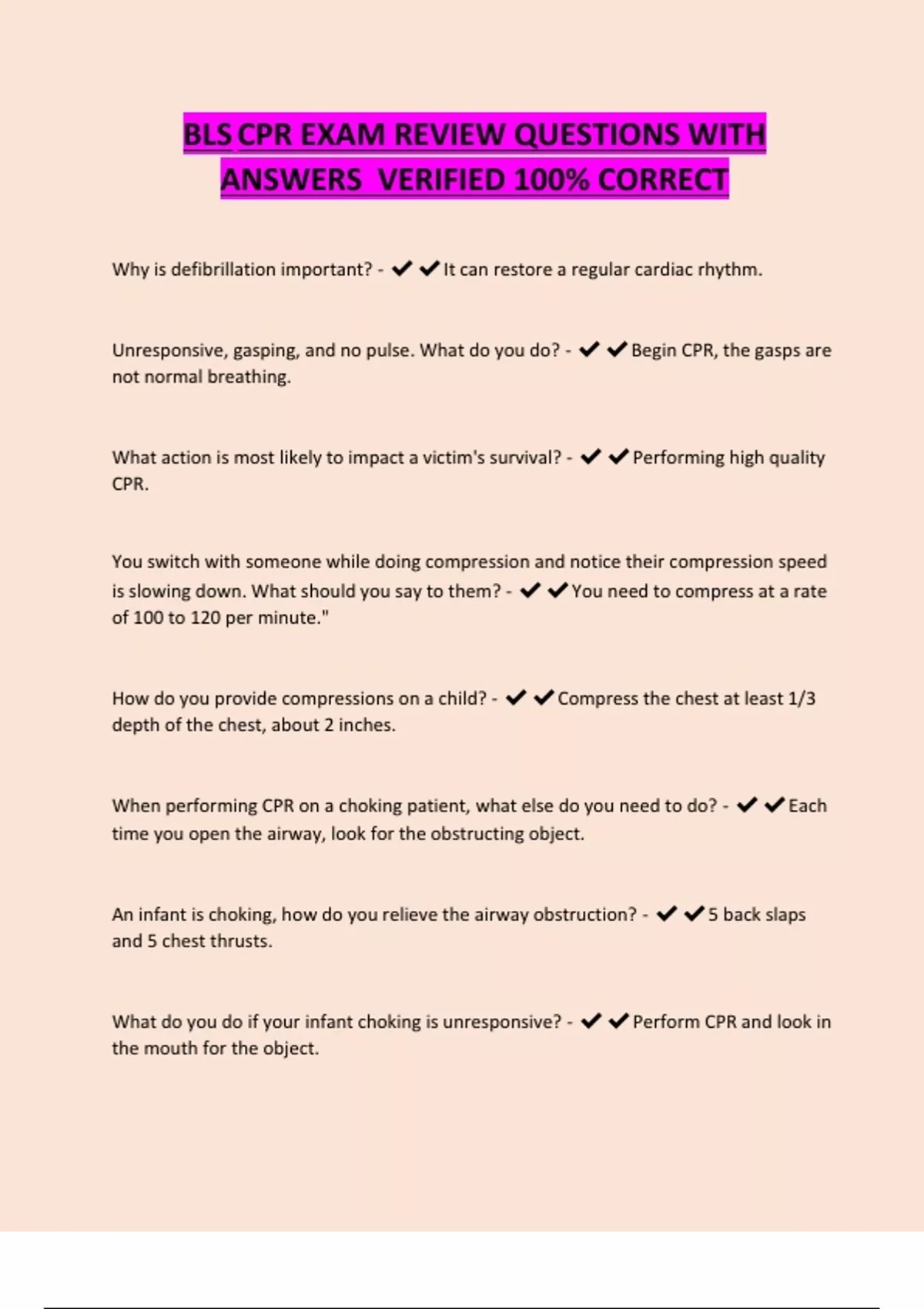BLS CPR EXAM REVIEW QUESTIONS WITH