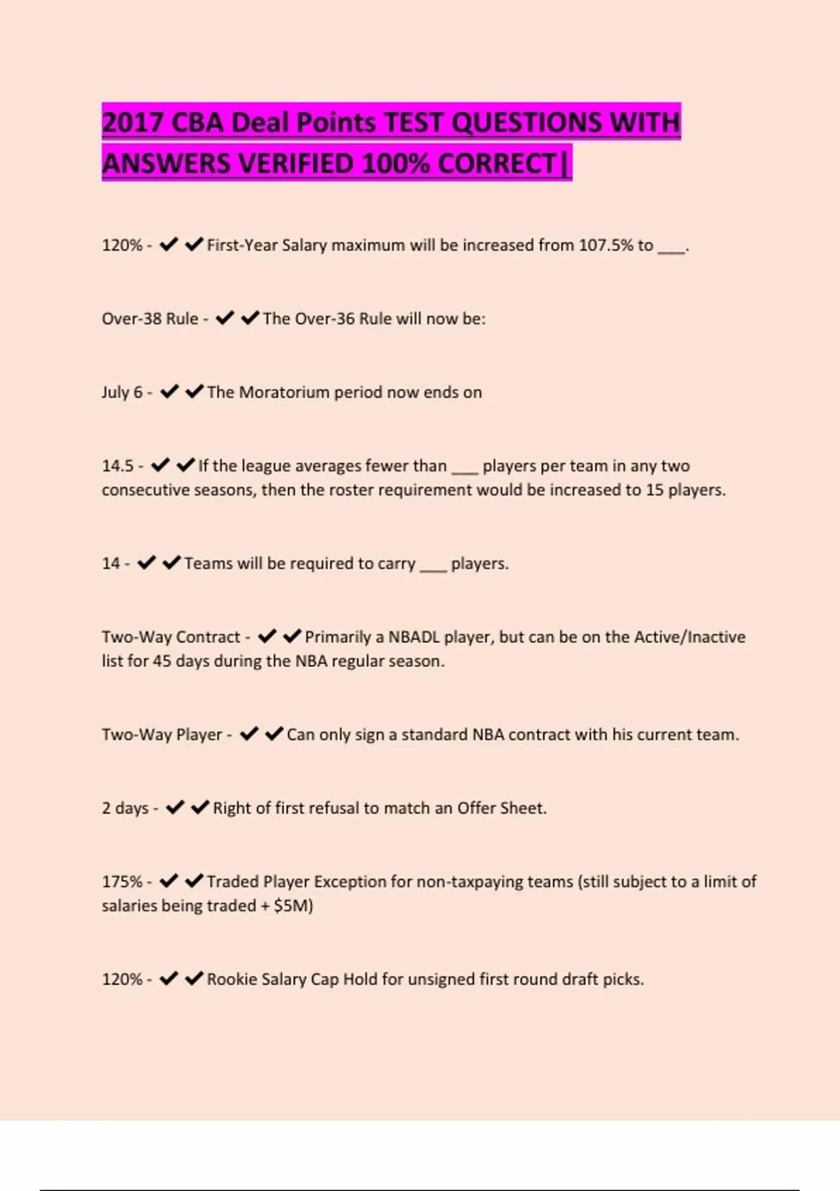 2017 CBA Deal Points TEST QUESTIONS WITH