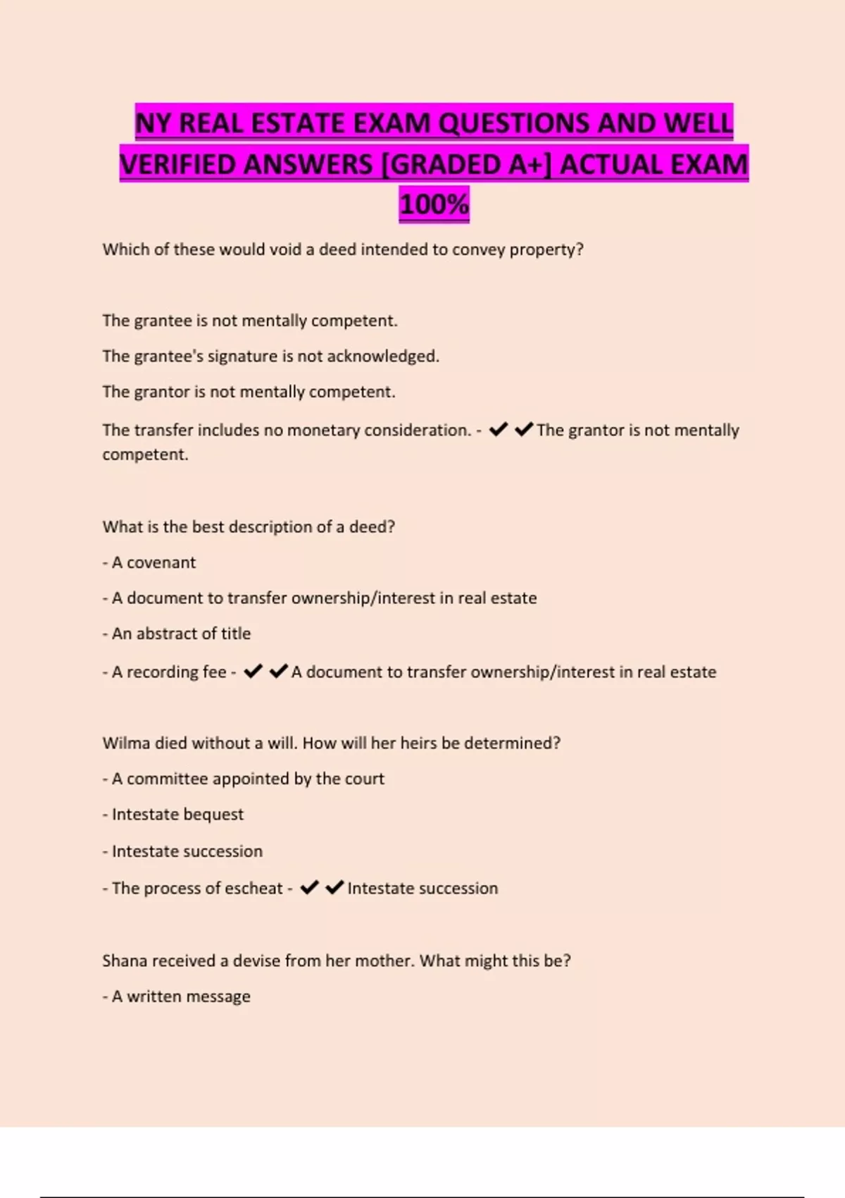 NY REAL ESTATE EXAM QUESTIONS AND WELL VERIFIED ANSWERS [GRADED A+] ACTUAL EXAM 100%