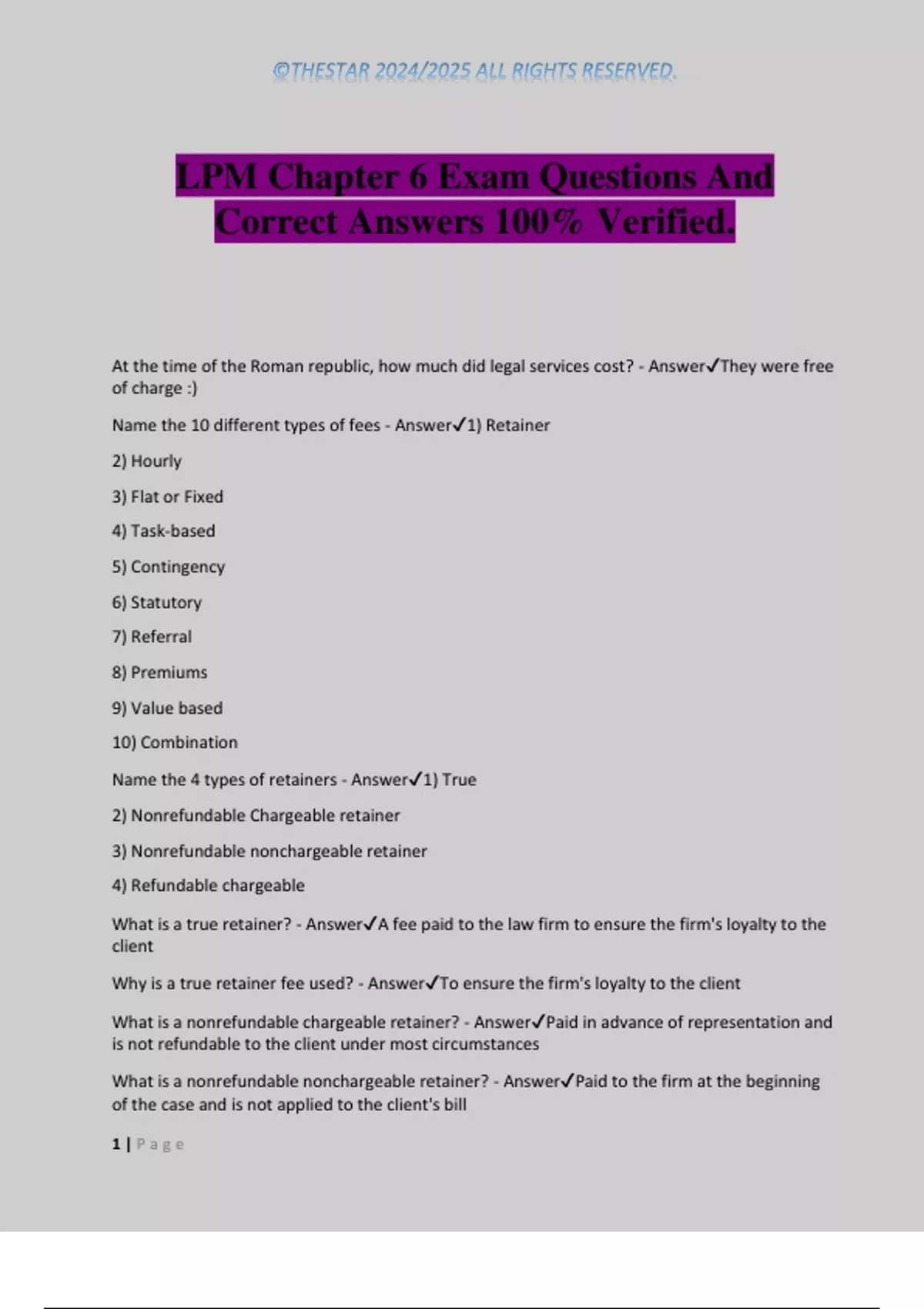 What is a true retainer? - Answer✔A fee paid to the law firm to ensure the firm's loyalty to the