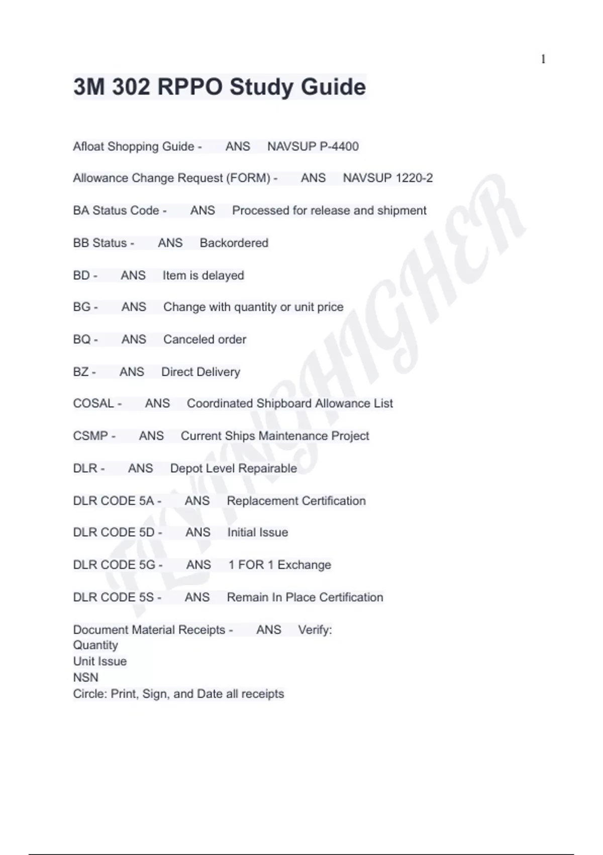 3M 302 RPPO Study Guide QUESTIONS & ANSWERS 2025 ( A+ GRADED 100% VERIFIED)