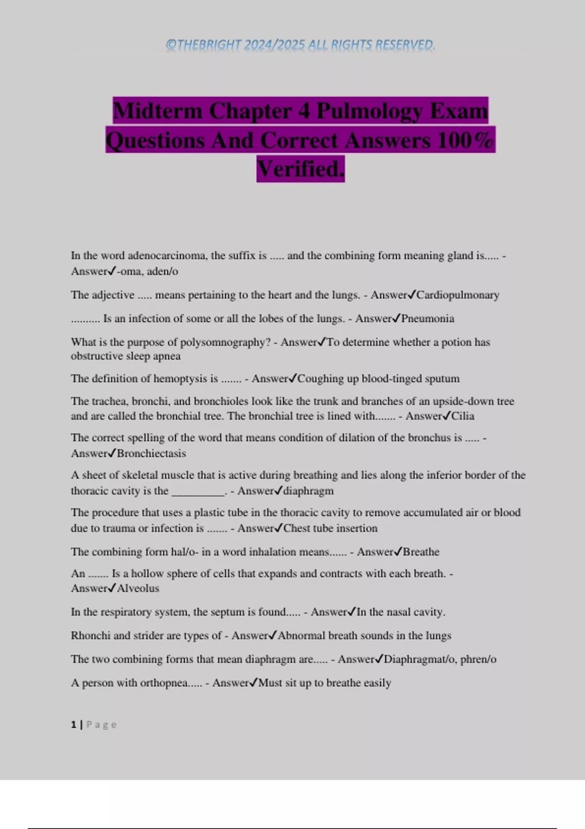 What is the purpose of polysomnography? - Answer✔To determine whether a potion has