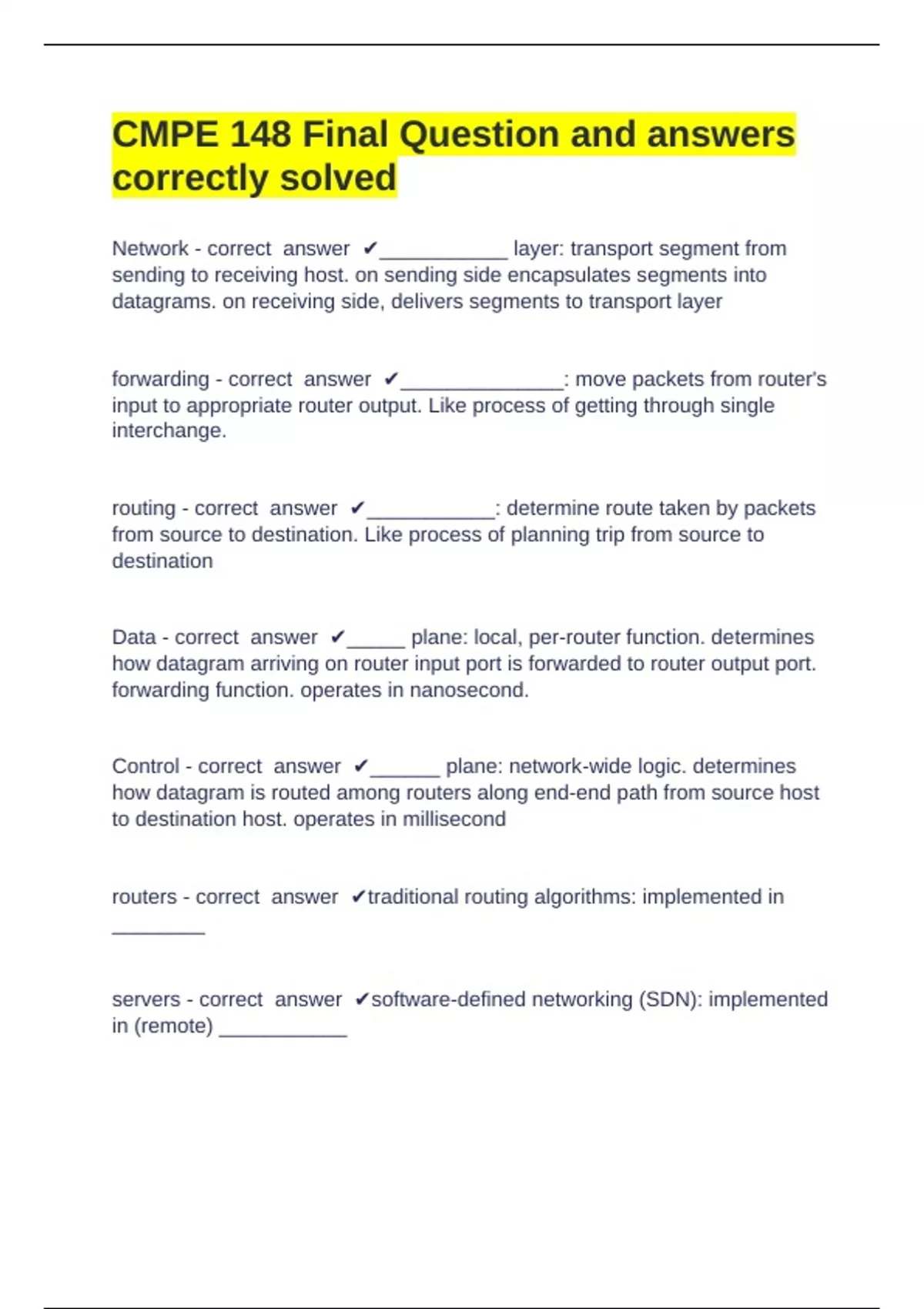 servers - correct answer ✔software-defined networking (SDN): implemented