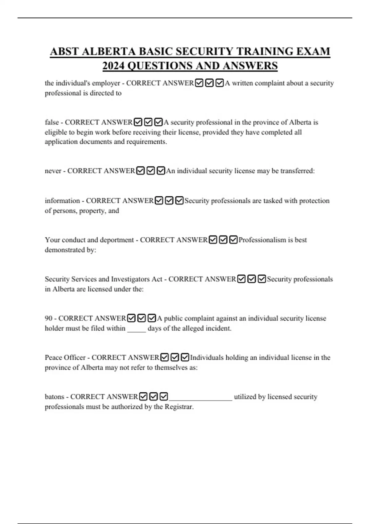 false - CORRECT ANSWER✅✅✅A security professional in the province of Alberta is