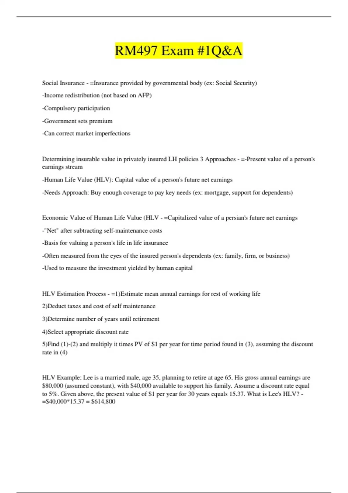 to 5%. Given above, the present value of $1 per year for 30 years equals 15.37. What is Lee's HLV? -