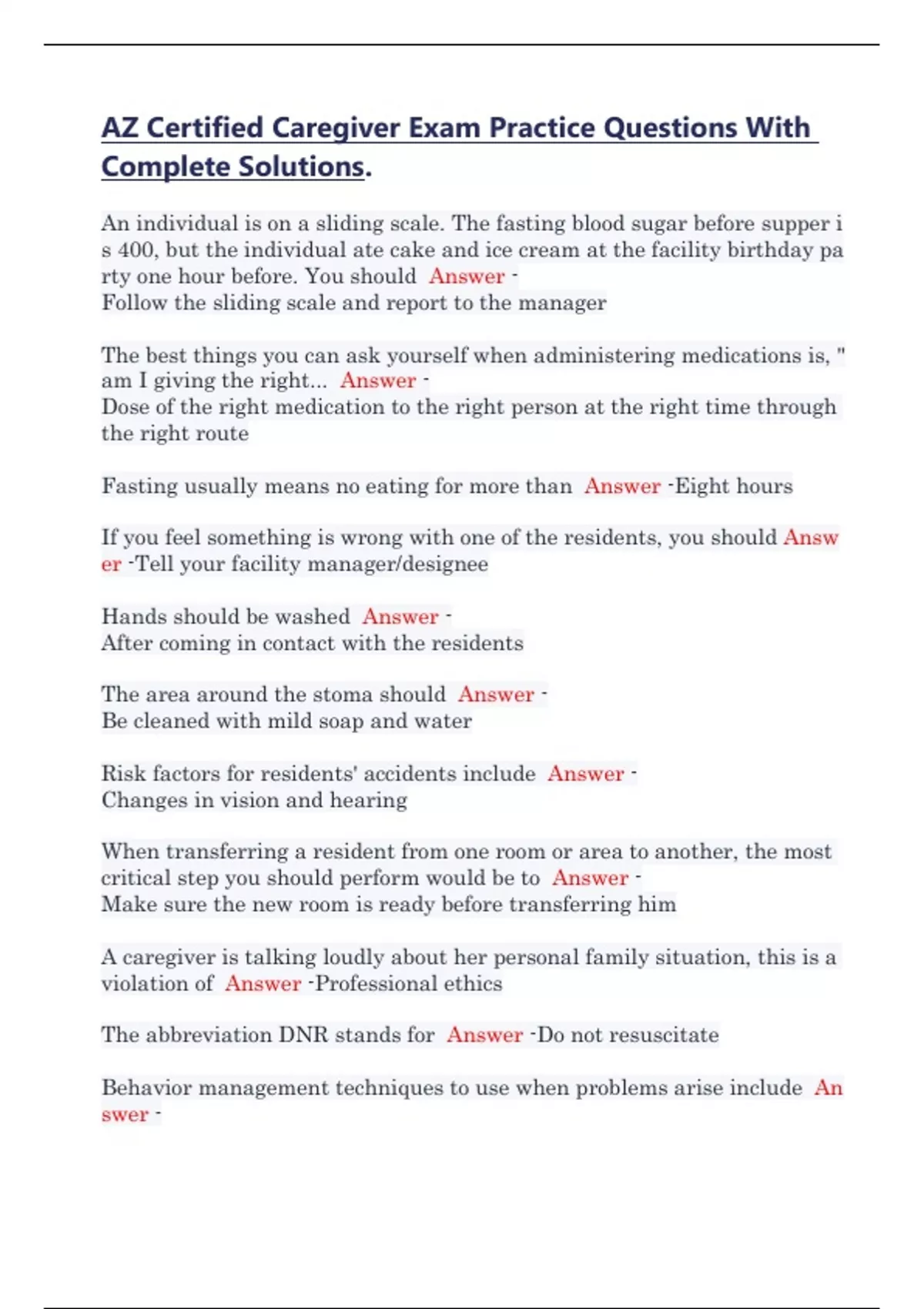 AZ Certified Caregiver Exam Practice Questions With Complete Solutions AZ Certified Caregiver Exam Practice Questions With Complete Solutions AZ Certified Caregiver Exam Practice Questions With Complete Solutions AZ Certified Caregiver Exam Practice Questions With Complete Solutions AZ Certified Caregiver Exam Practice Questions With Complete Solutions AZ Certified Caregiver Exam Practice Questions With Complete Solutions