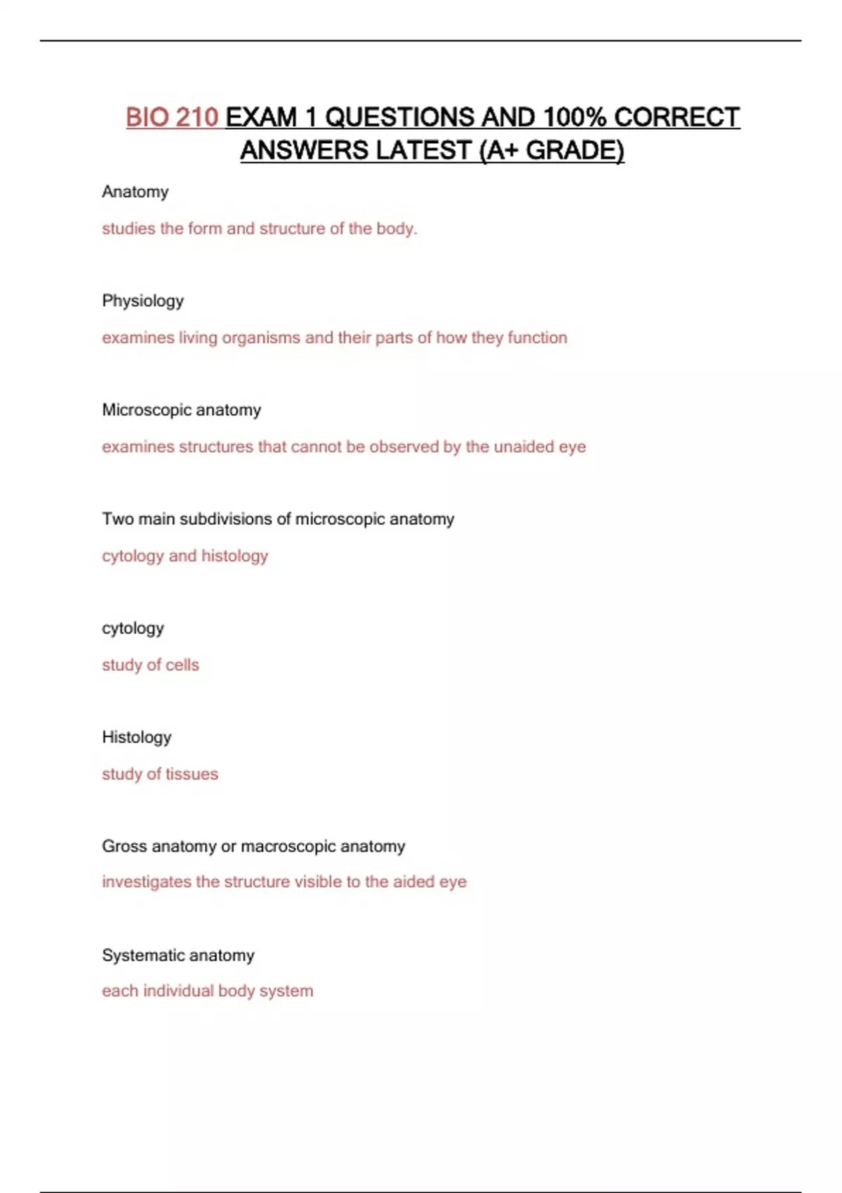 BIO 210 EXAM 1 QUESTIONS AND 100% CORRECT