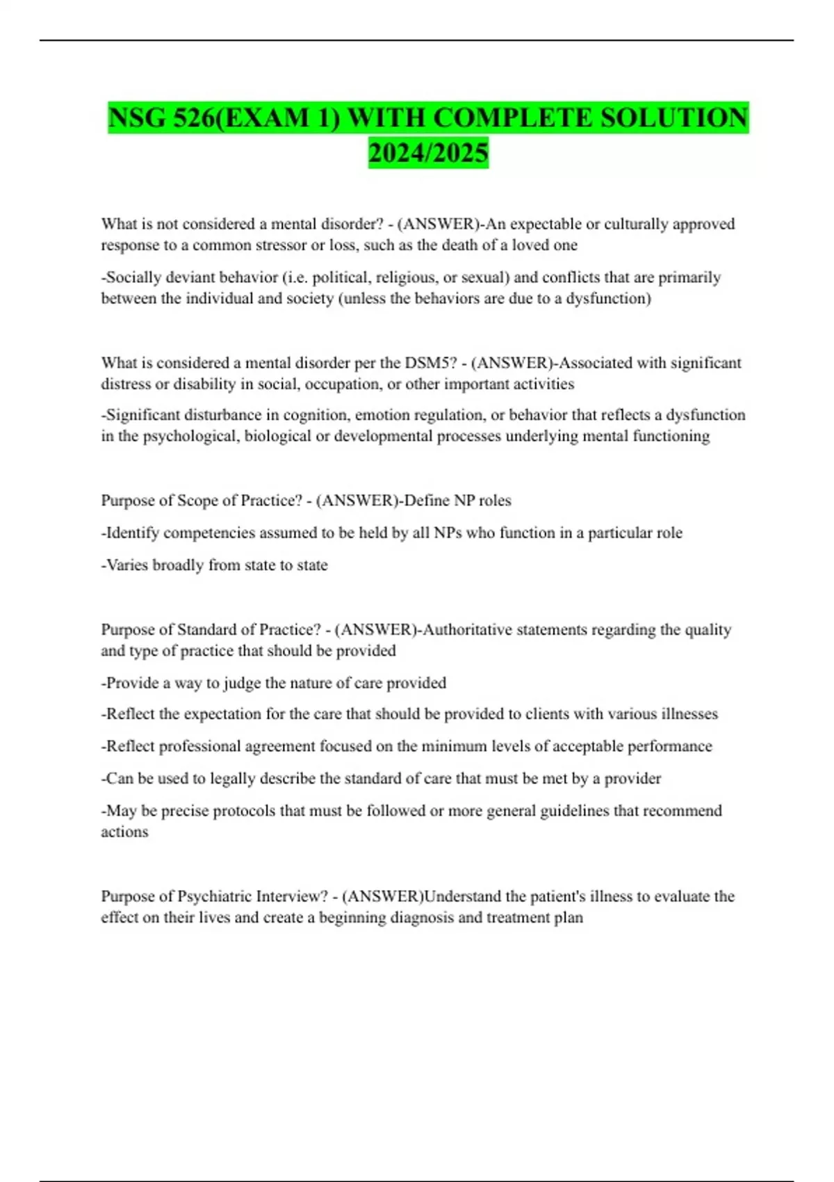 NSG 526(EXAM 1) WITH COMPLETE SOLUTION