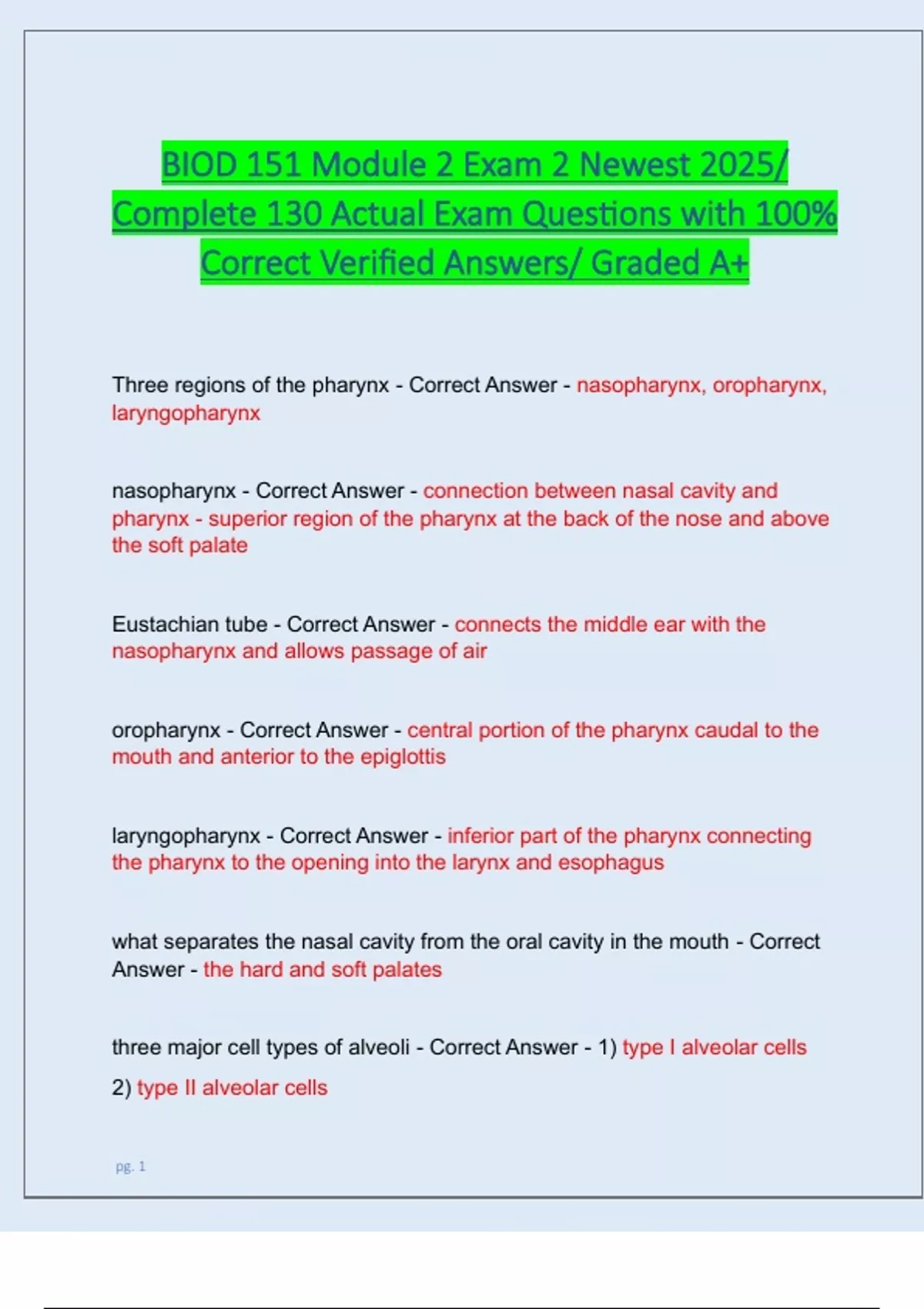 Portage BIOD 151 Module 2 Exam Newest 2025 Actual Exam| Complete 130 Real Exam Questions with 100% Correct Verified Answers/ Graded A+