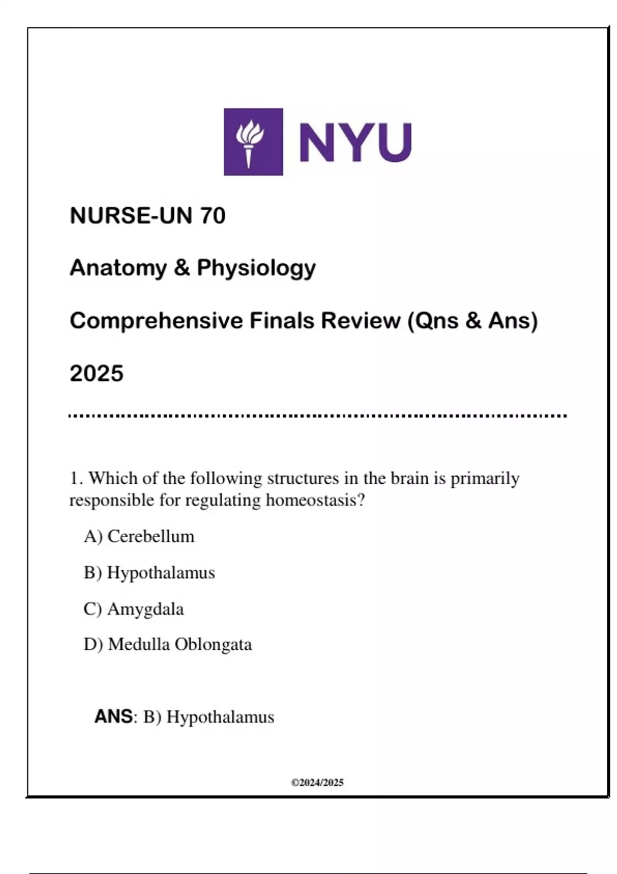 NURSE-UN 70 Anatomy & Physiology (NYU Online) Comprehensive Finals Review 2025NURSE-UN 70 Anatomy & Physiology (NYU Online) Comprehensive Finals Review 2025NURSE-UN 70 Anatomy & Physiology (NYU Online) Comprehensive Finals Review 2025