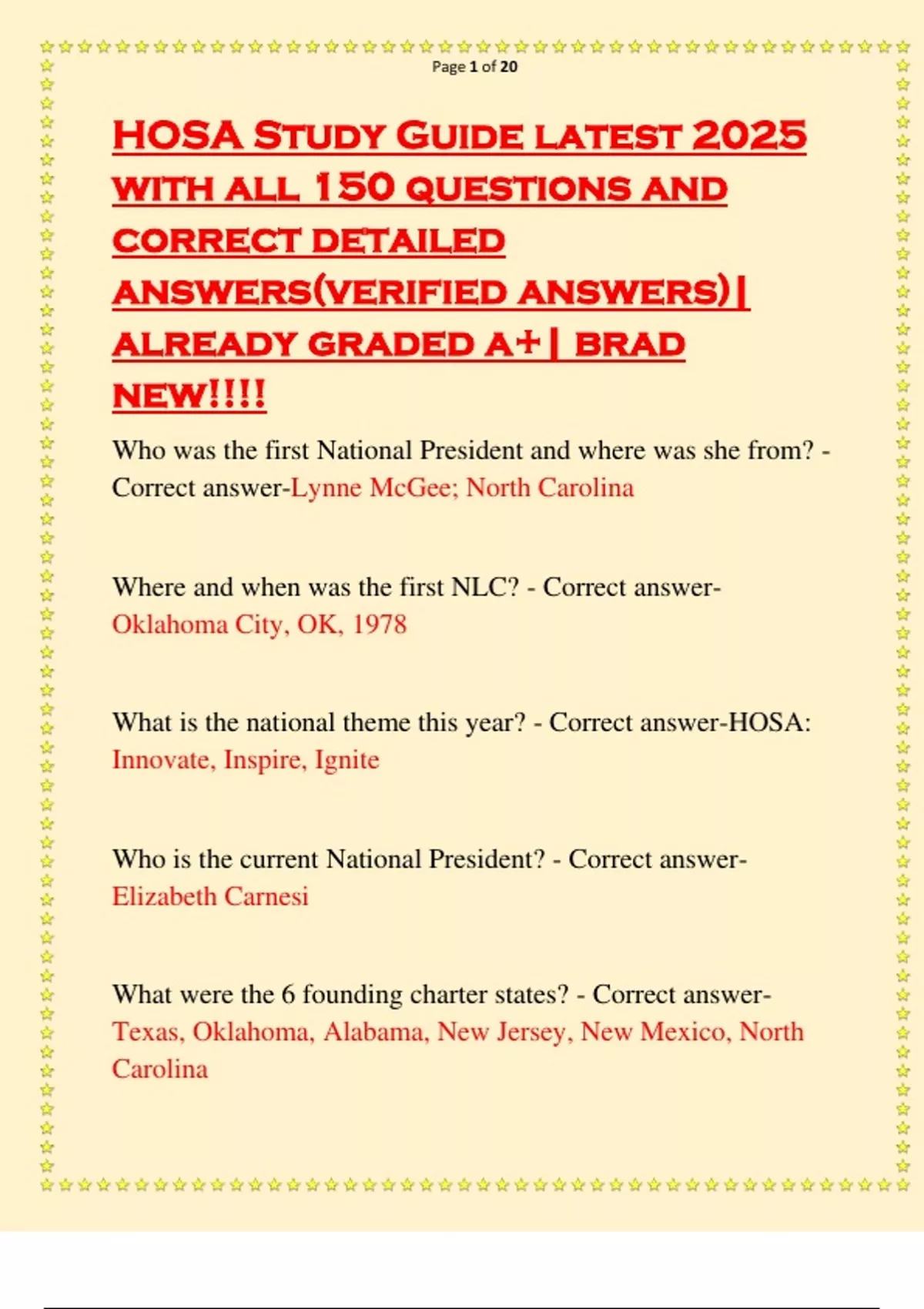 HOSA Study Guide latest 2025 with all 150 questions and correct detailed answers(verified answers)| already graded a+| brad new!!!!