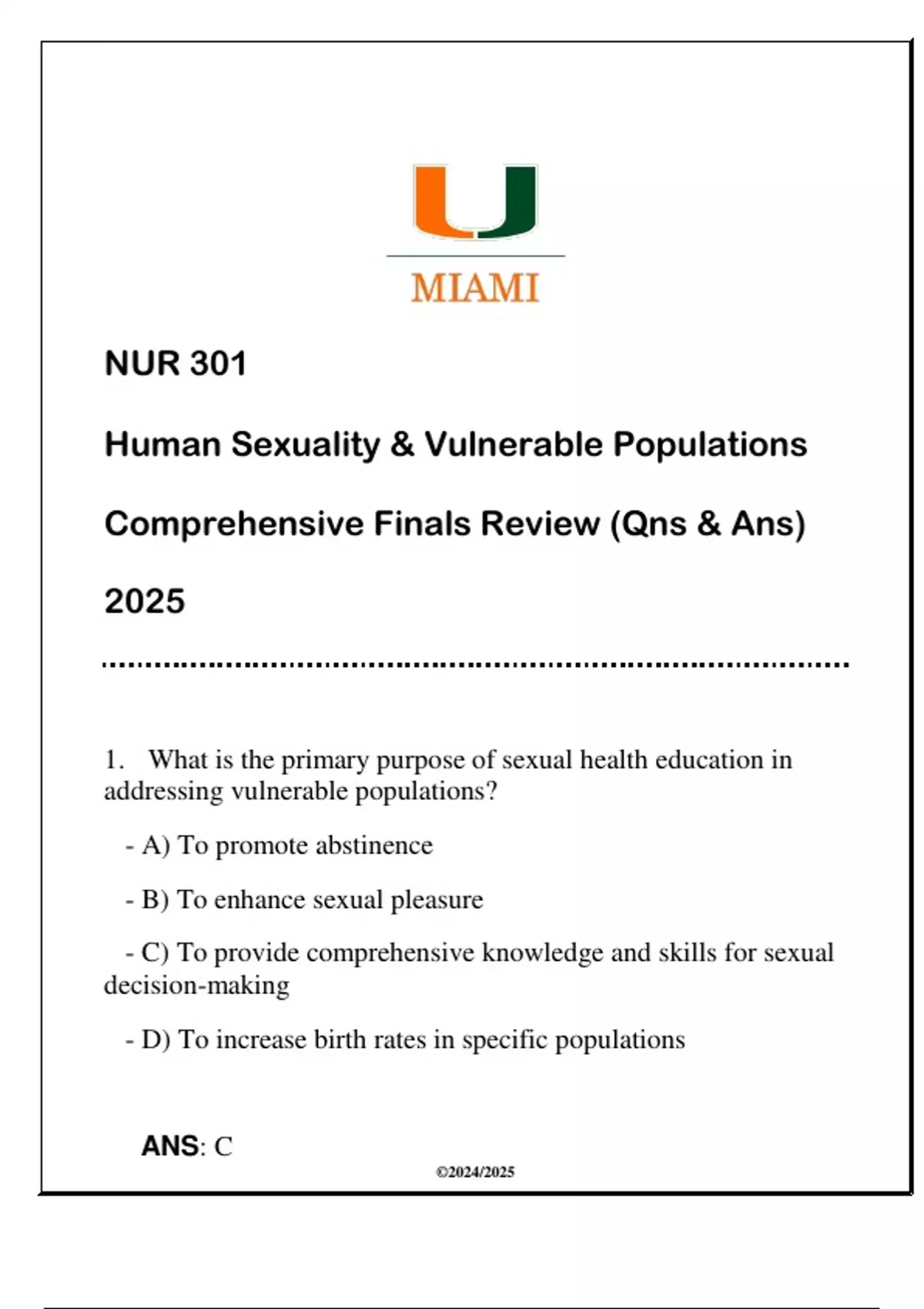 - C) To provide comprehensive knowledge and skills for sexual