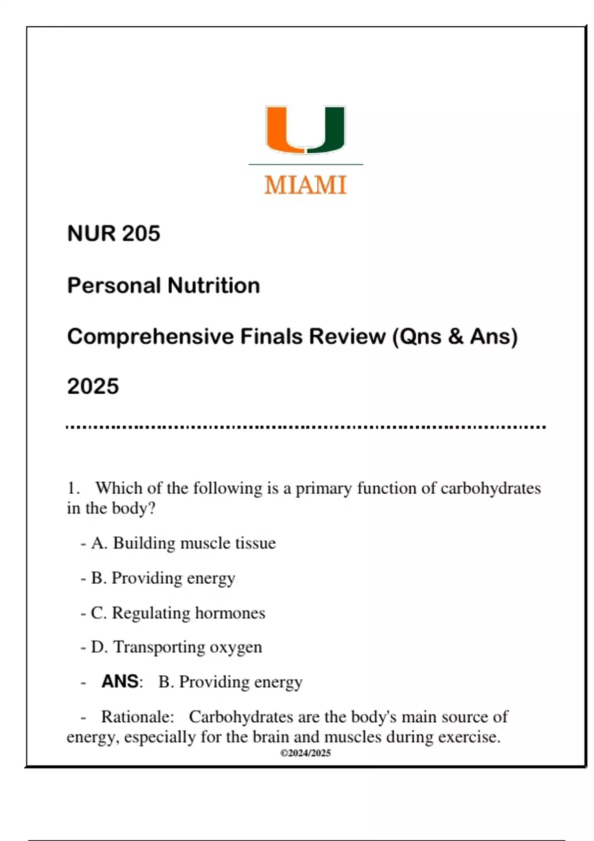 NUR 205 Personal Nutrition (UM) Comprehensive Finals Review 2025NUR 205 Personal Nutrition (UM) Comprehensive Finals Review 2025NUR 205 Personal Nutrition (UM) Comprehensive Finals Review 2025