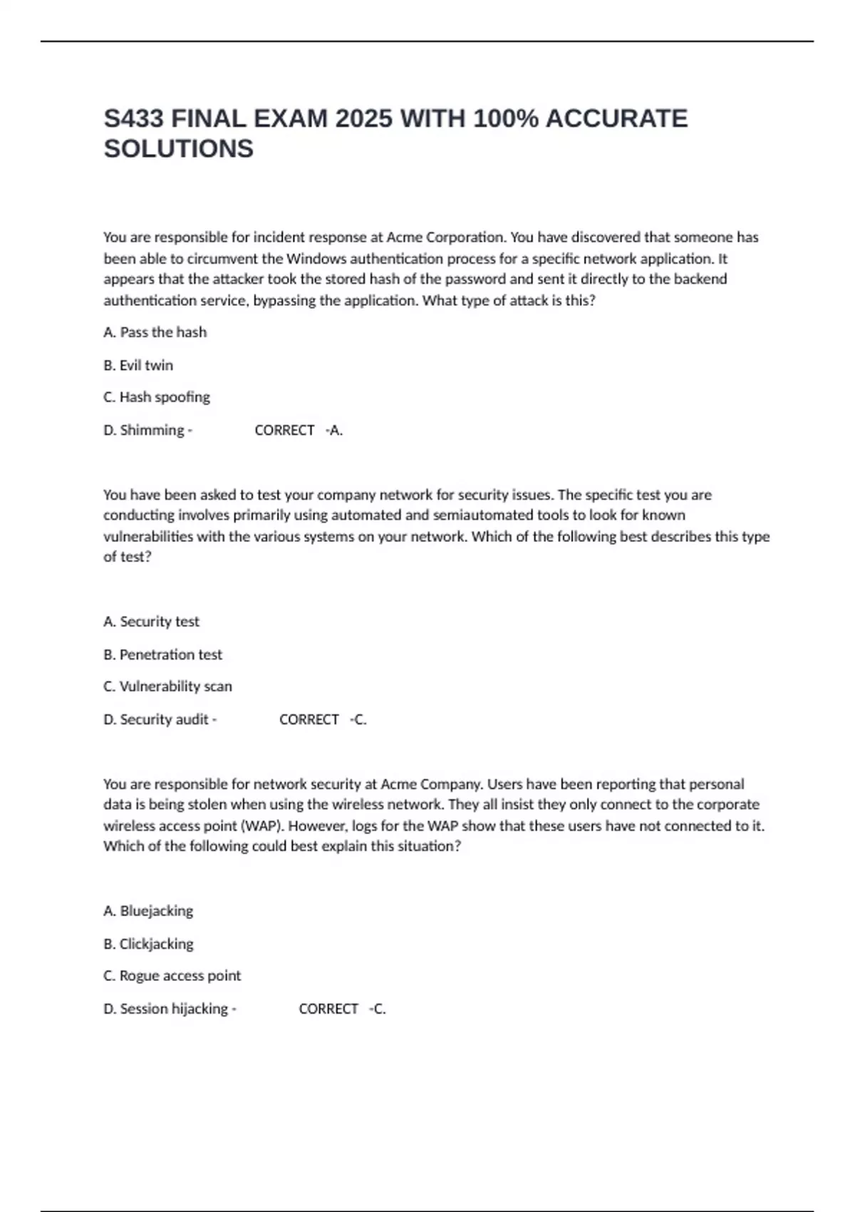 S433 FINAL EXAM 2025 WITH 100% ACCURATE
