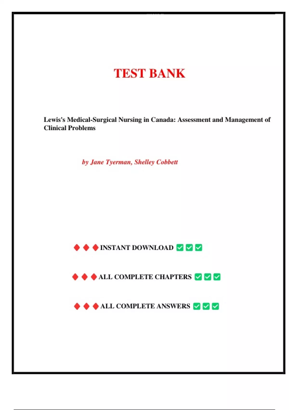 Test Bank for Lewis's Medical-Surgical Nursing in Canada, 5th Edition (by Jane Tyerman, 2023), Chapter 1-72 | All Chapters