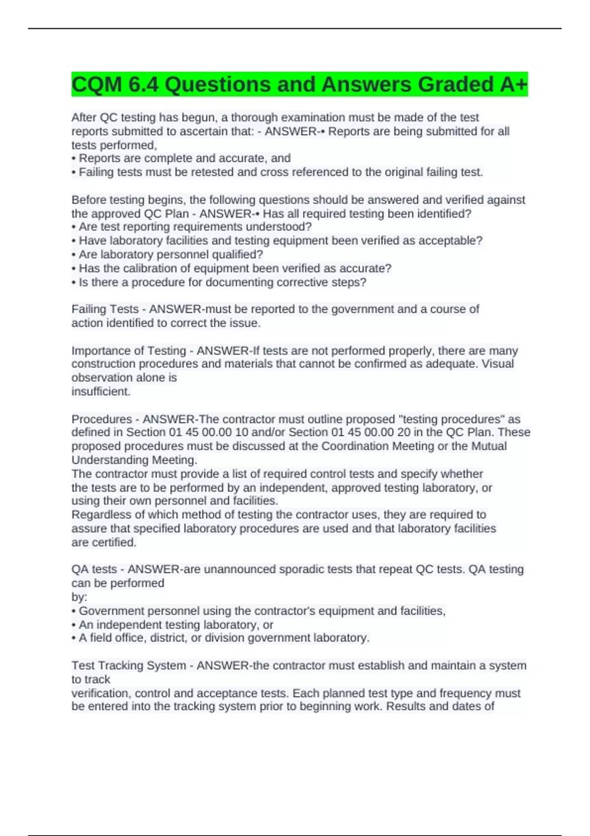 CQM 6.4 Questions and Answers Graded A+
