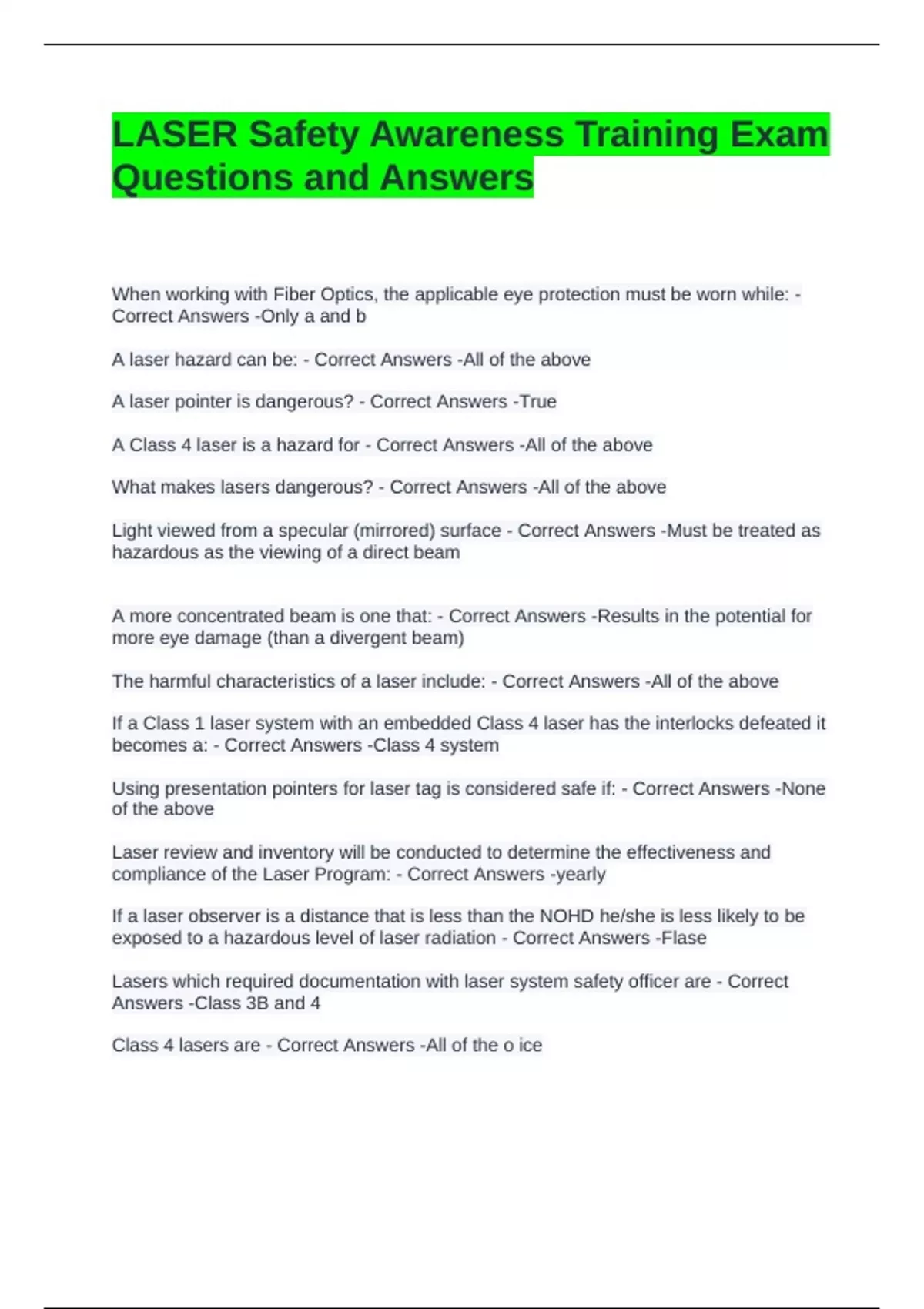 exposed to a hazardous level of laser radiation - Correct Answers -Flase