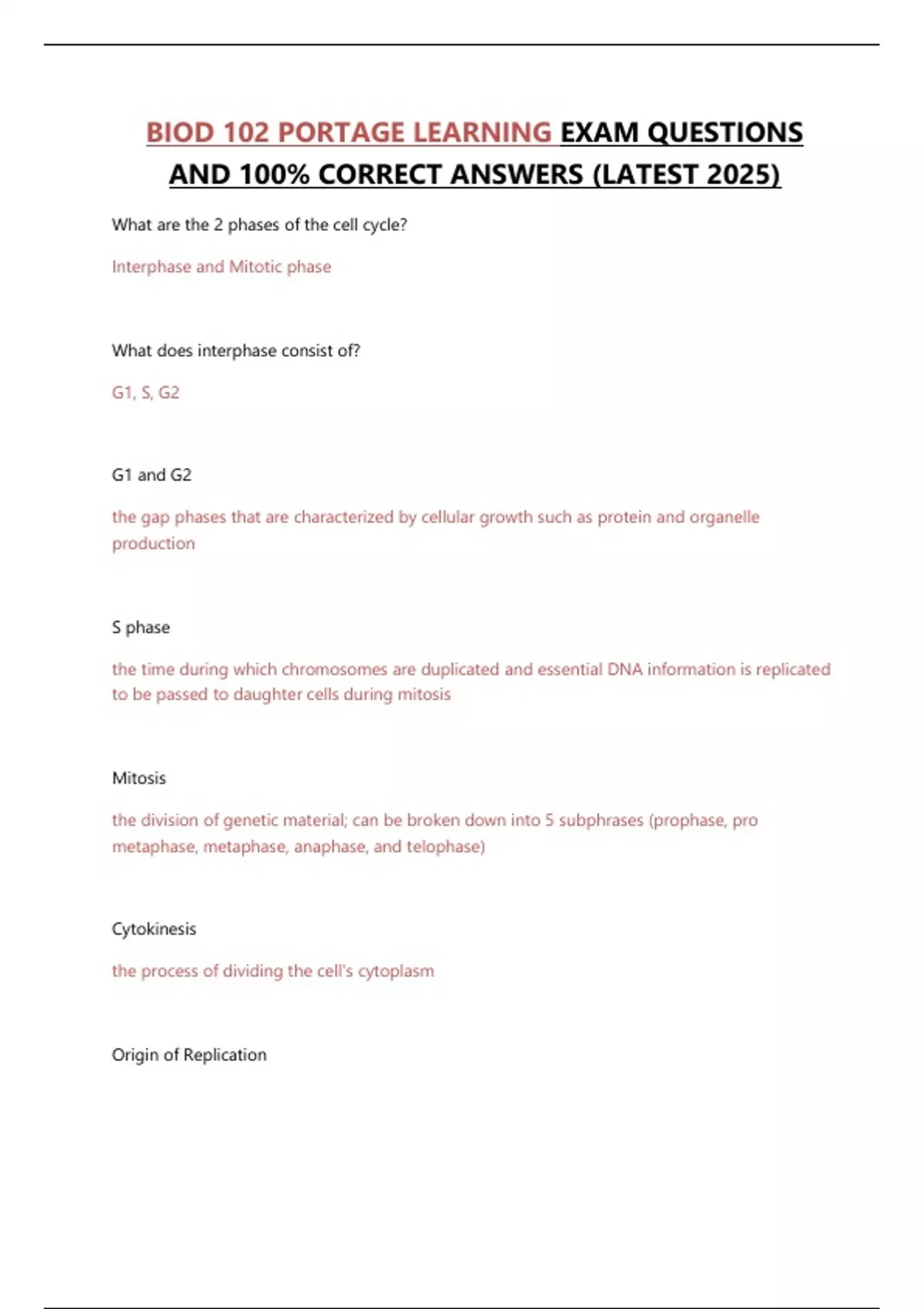 BIOD 102 PORTAGE LEARNING EXAM QUESTIONS AND 100% CORRECT ANSWERS (LATEST 2025)