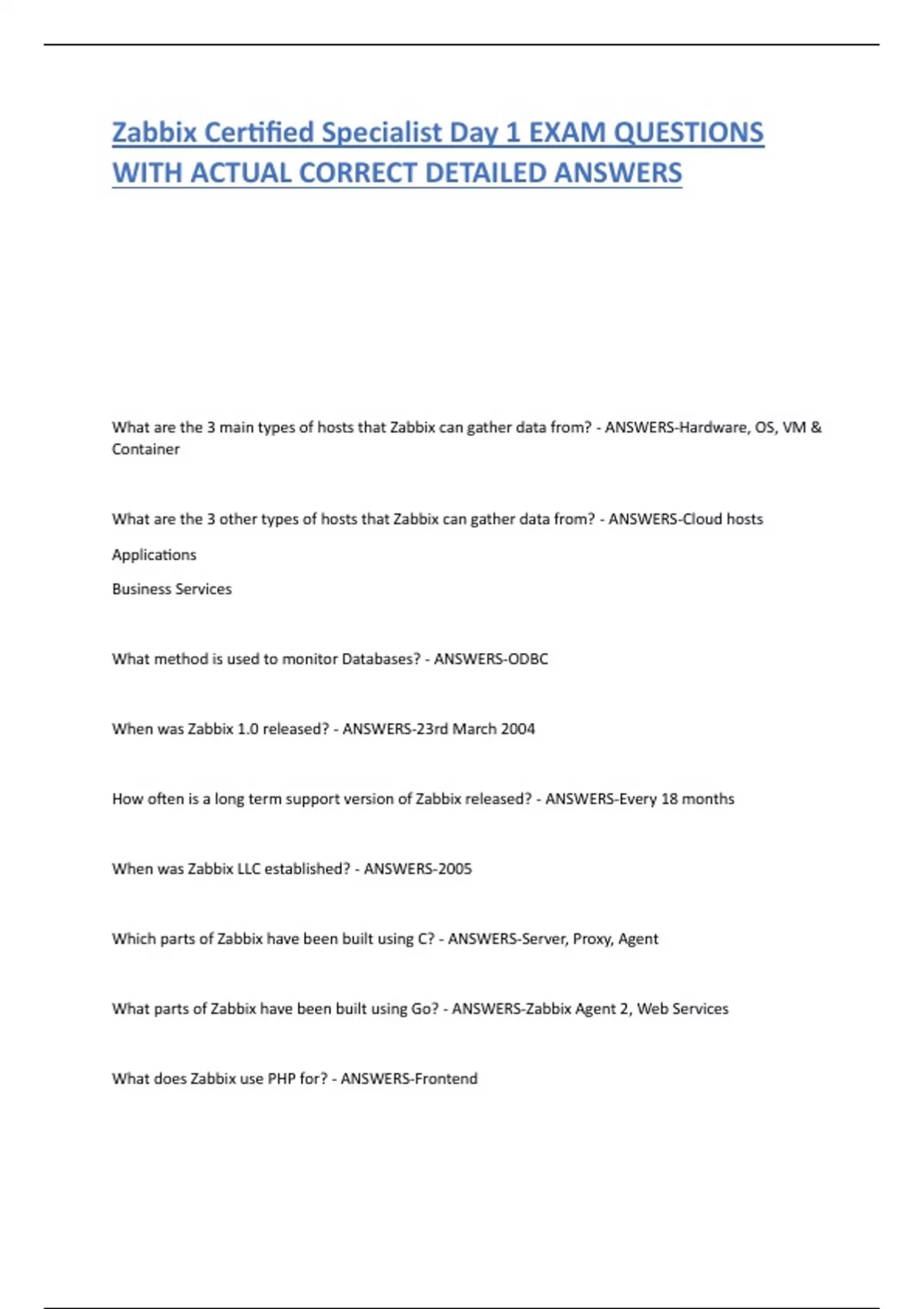 Zabbix Certified Specialist Day 1 EXAM QUESTIONS WITH ACTUAL CORRECT DETAILED ANSWERS