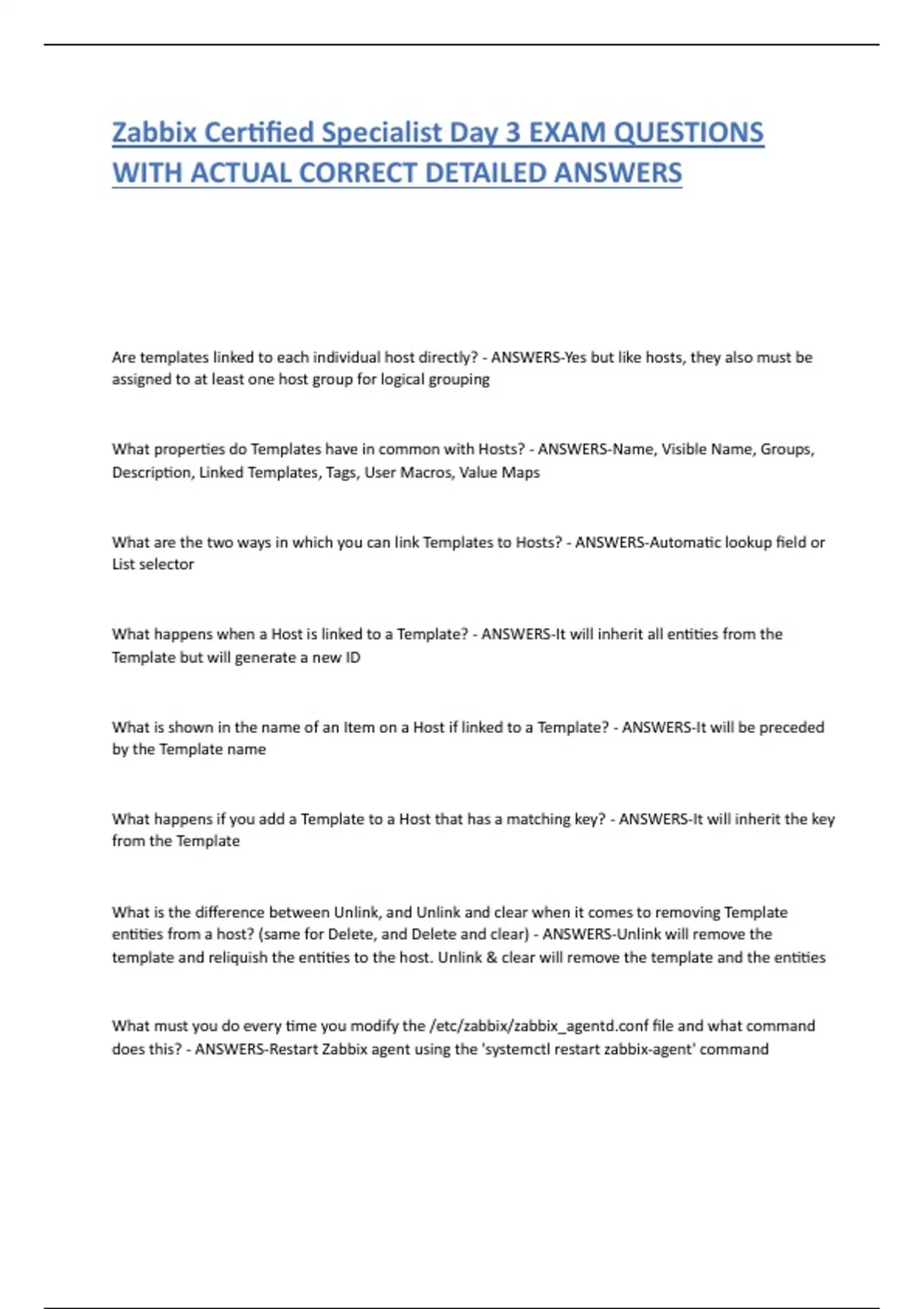 Zabbix Certified Specialist Day 3 EXAM QUESTIONS WITH ACTUAL CORRECT DETAILED ANSWERS