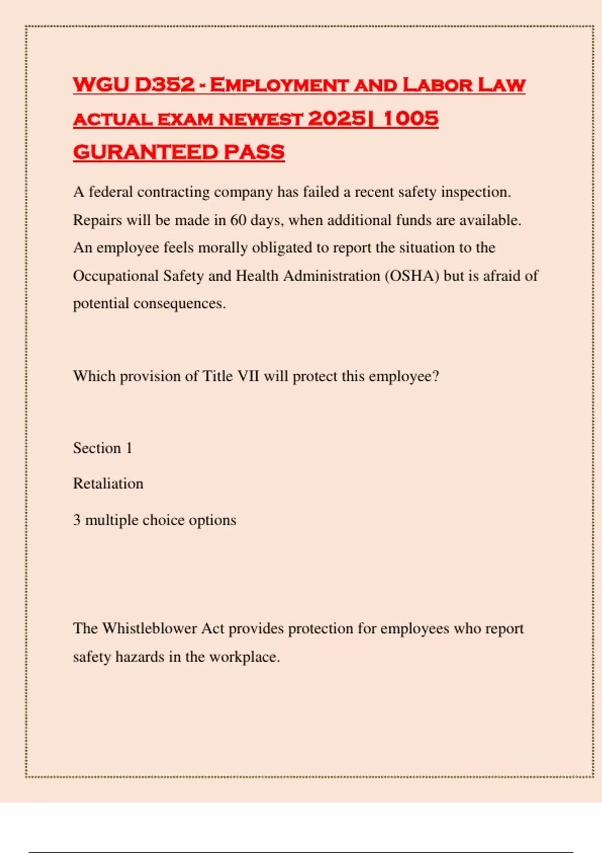 WGU D352 - Employment and Labor Law actual exam newest 2025| 1005 GURANTEED PASS