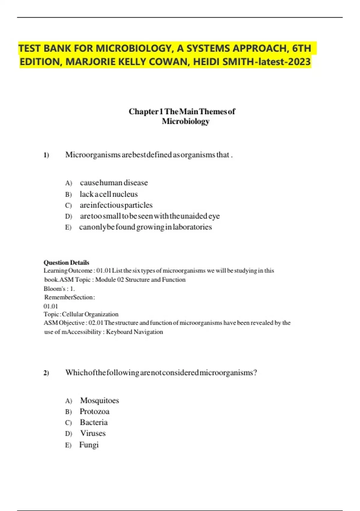TEST BANK FOR MICROBIOLOGY, A SYSTEMS APPROACH, 6TH