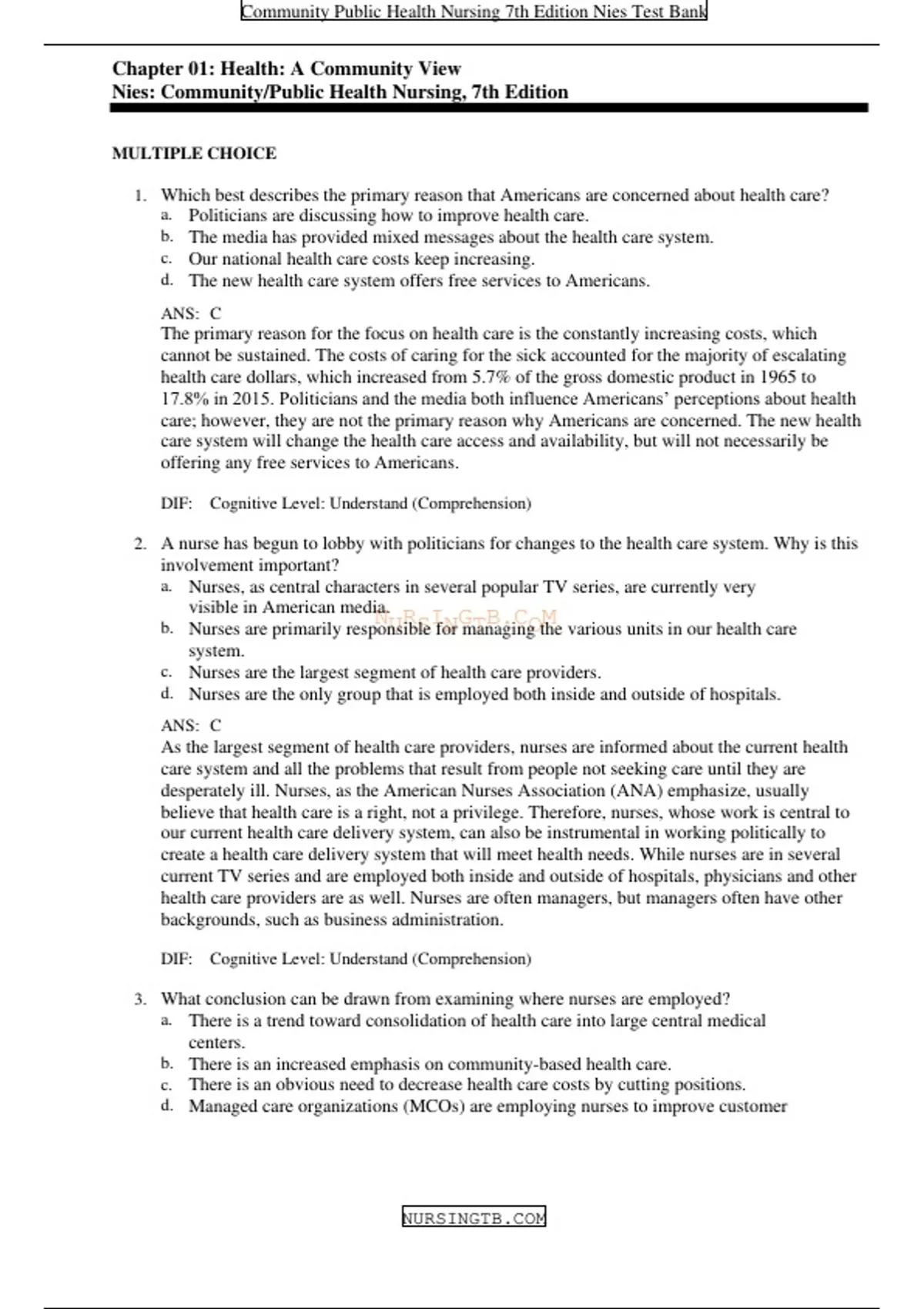 Community Public Health Nursing 7th Edition Nies Test Bank