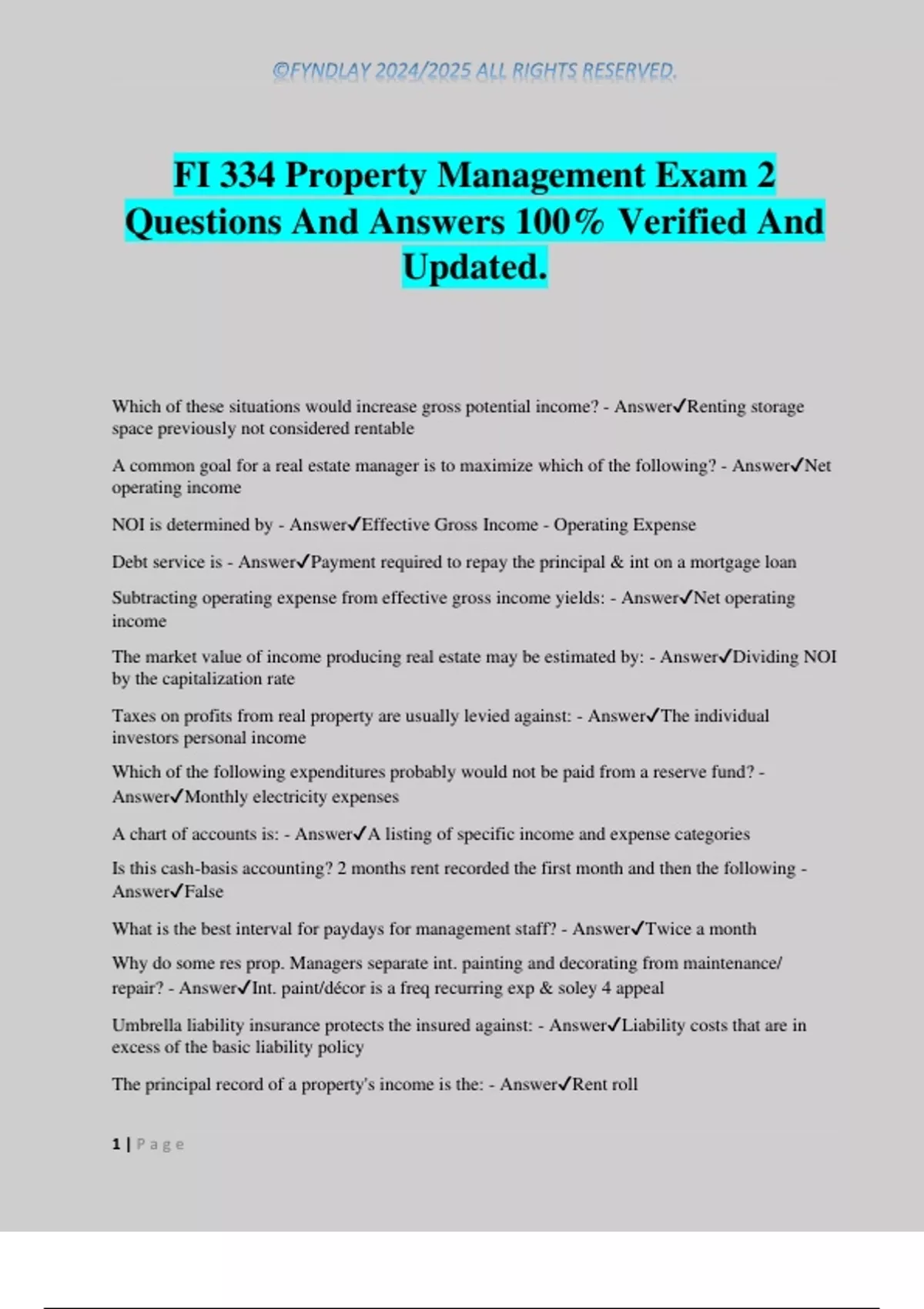 FI 334 Property Management Exam 2