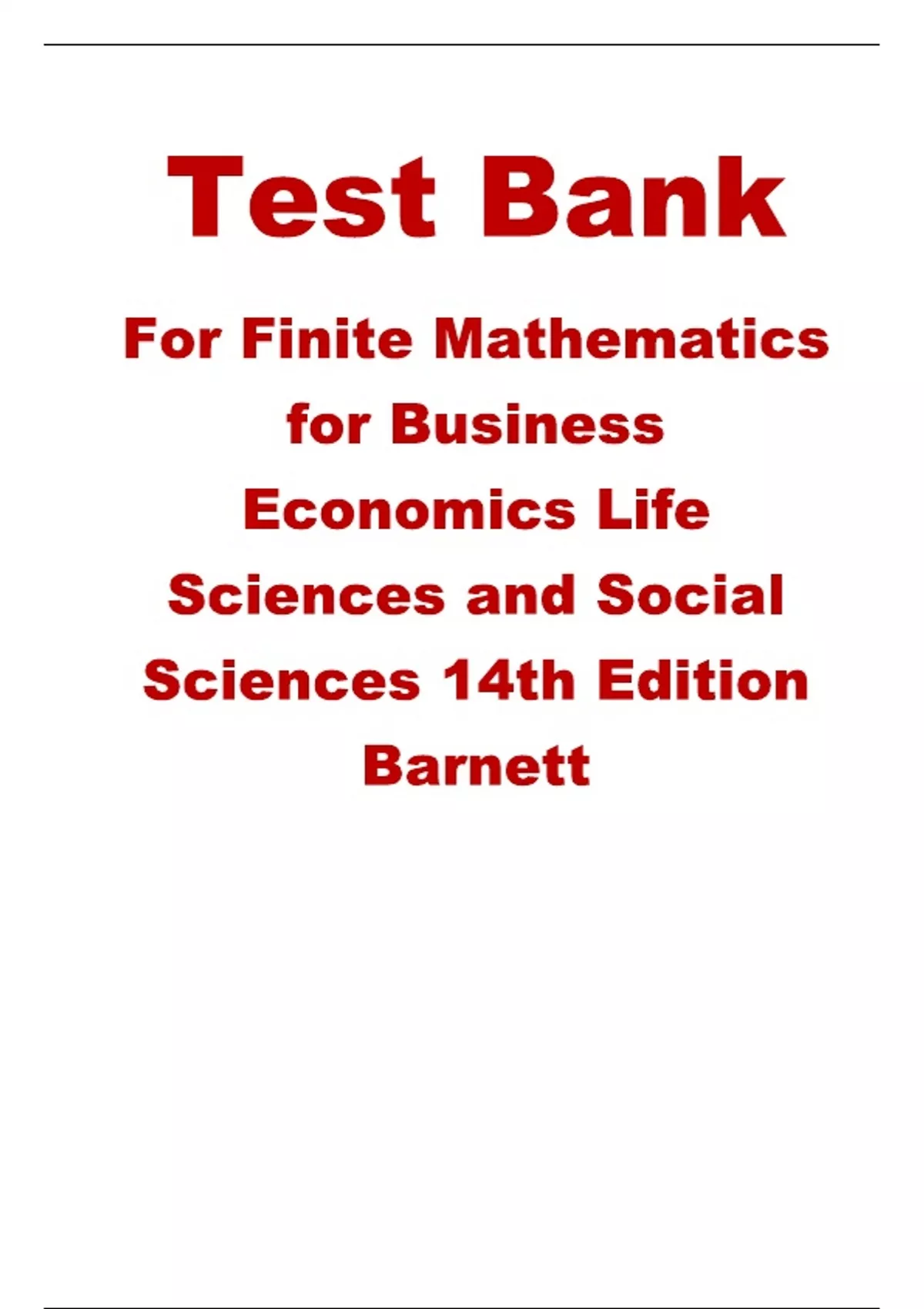 Test Bank For Finite Mathematics for Business, Economics, Life Sciences, and Social Sciences 14th Edition | All Chapters with Answers and Rationales | LATEST.
