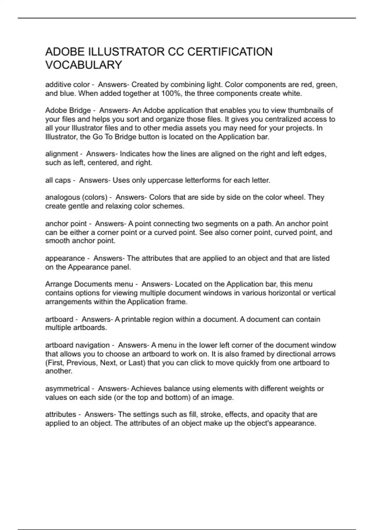 ADOBE ILLUSTRATOR CC CERTIFICATION VOCABULARY