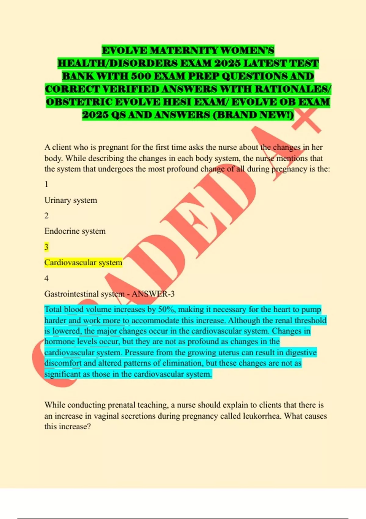 OBSTETRIC EVOLVE HESI EXAM/ EVOLVE OB EXAM