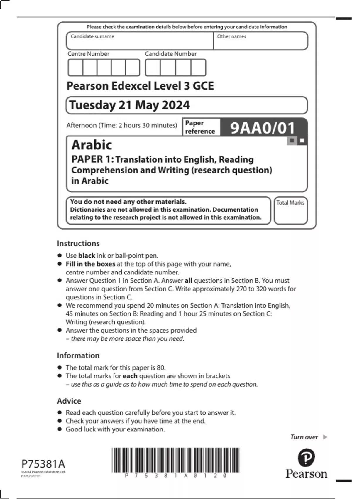 •• The total mark for this paper is 80.