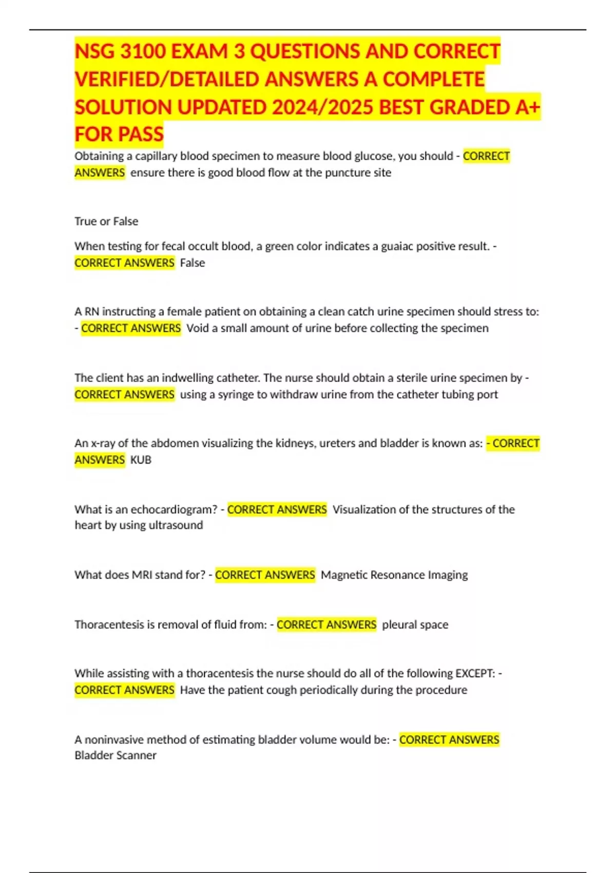 NSG 3100 EXAM 3 QUESTIONS AND CORRECT VERIFIED/DETAILED ANSWERS A COMPLETE SOLUTION UPDATED 2024/2025 BEST GRADED A+ FOR PASS