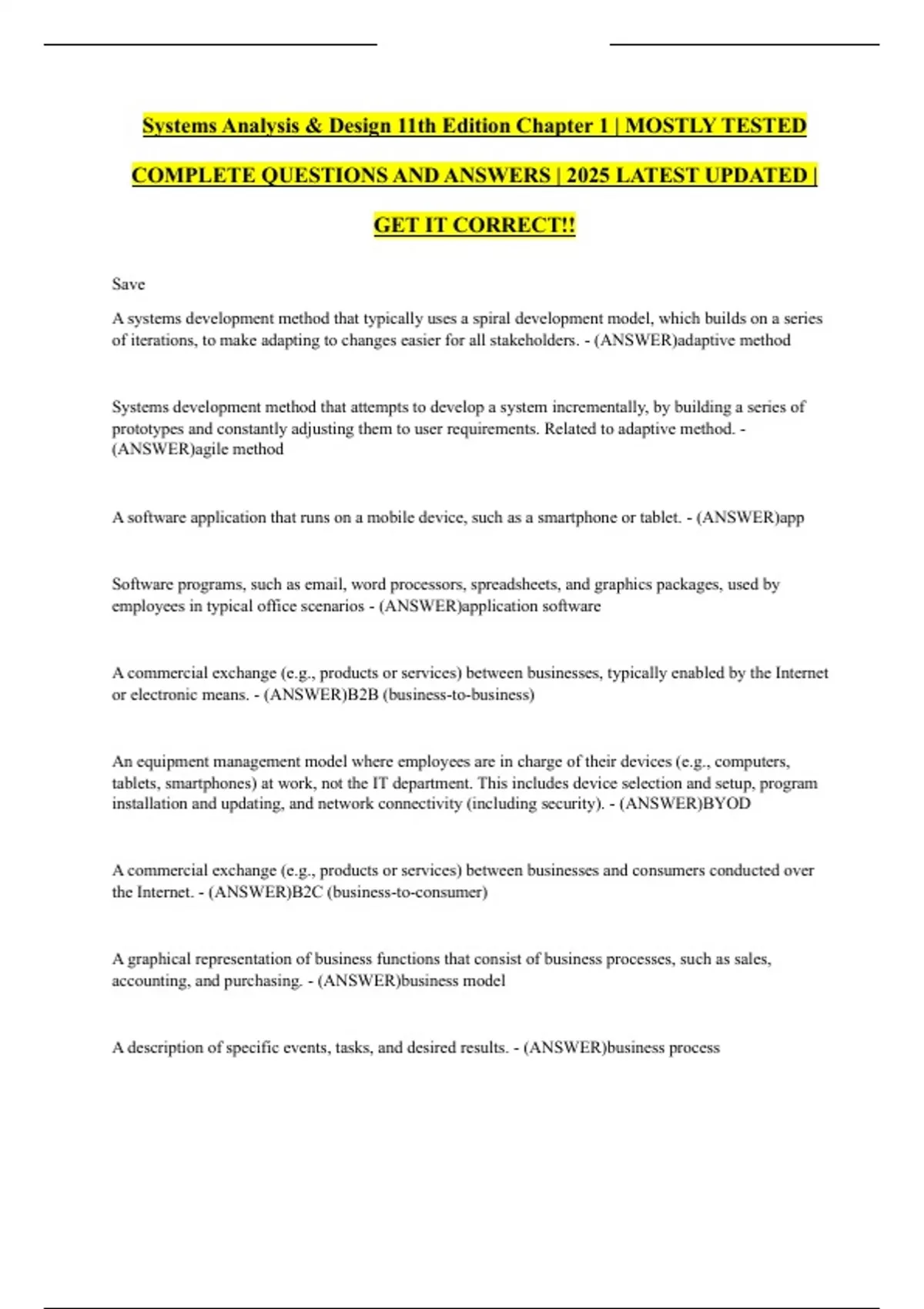 Systems Analysis & Design 11th Edition Chapter 1 | MOSTLY TESTED COMPLETE QUESTIONS AND ANSWERS | 2025 LATEST UPDATED | GET IT CORRECT!!