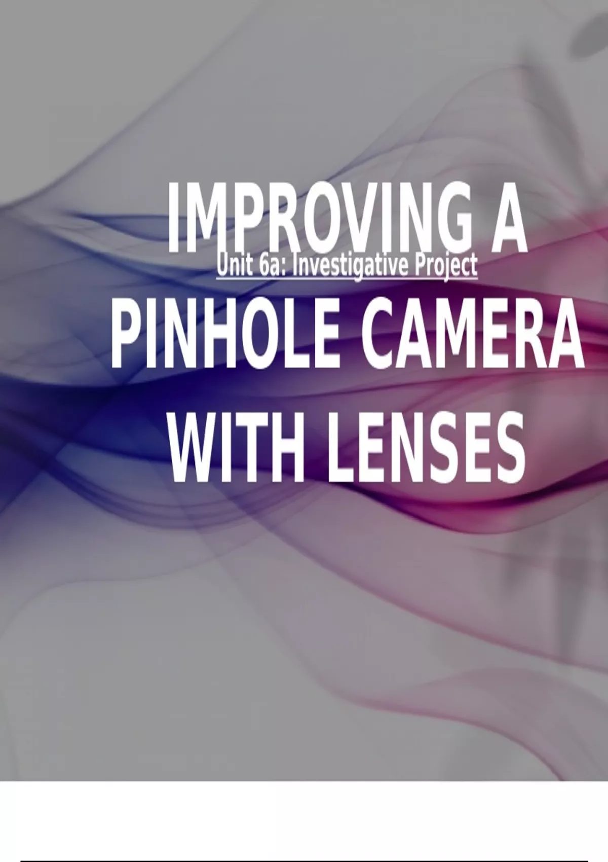 Unit 6a: Investigative Project