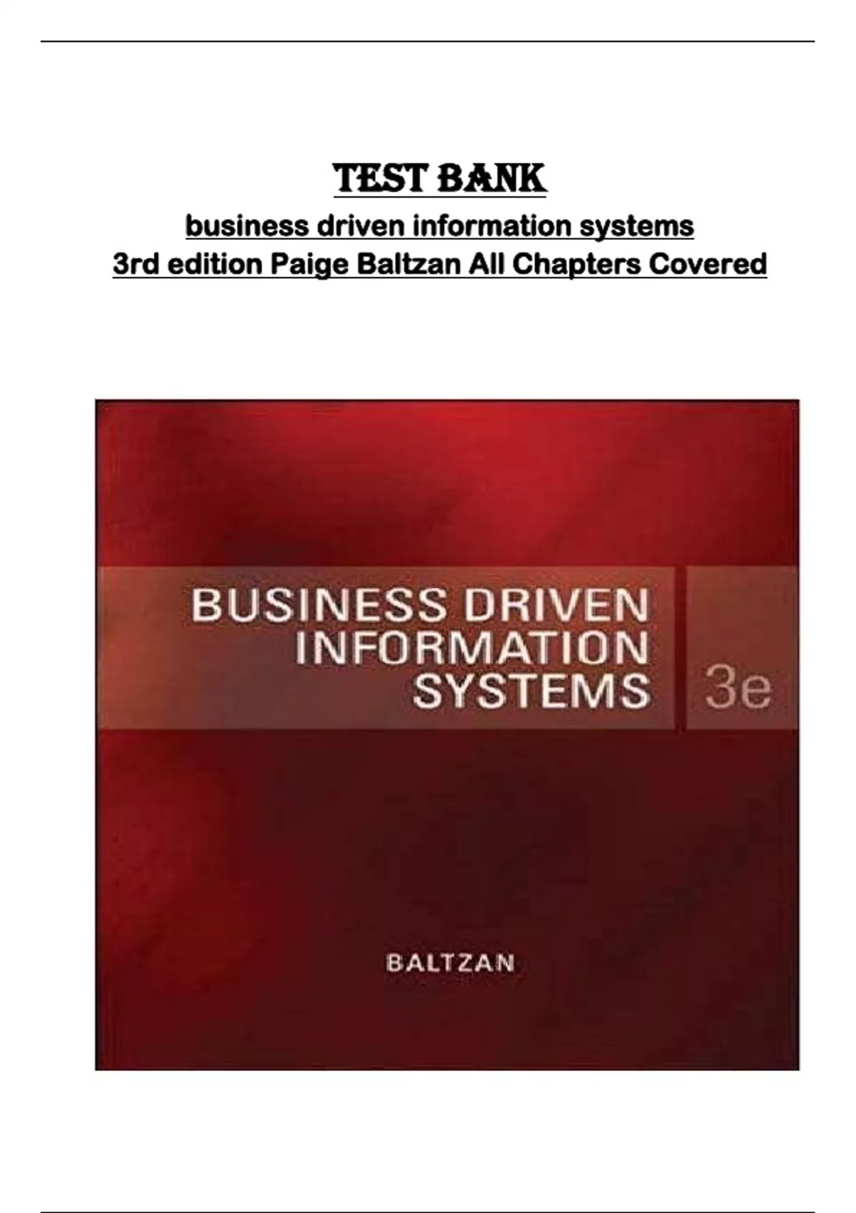 , TestrBankrBusinessrDrivenrInformationrSystemsr3rdr EditionrPaigerBaltzanr(ALLrDOWNLOADABLErCHAPERS)