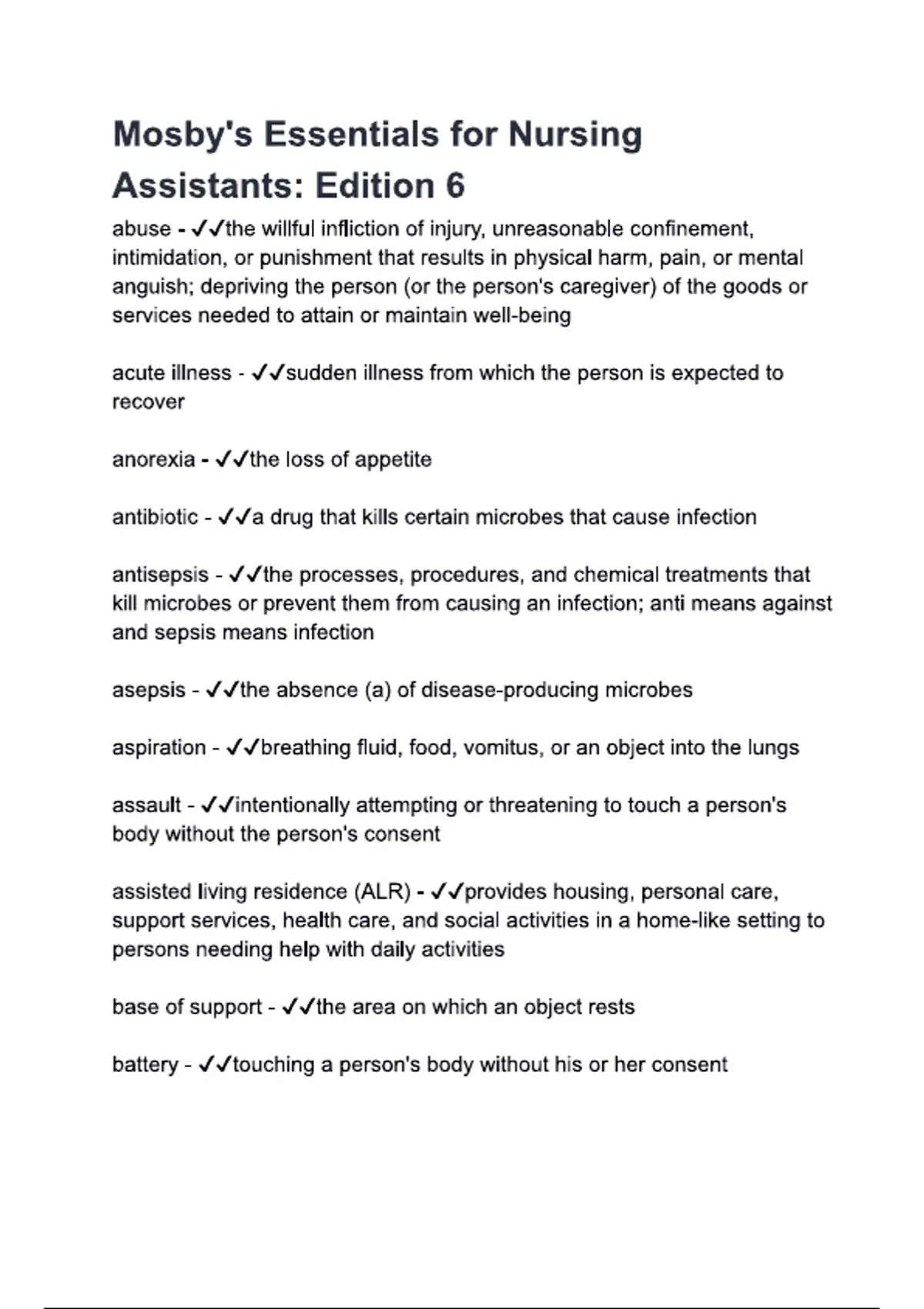 Mosby's Essentials for Nursing Assistants Edition 6 Questions with Correct Answers 100% Pass Rates.