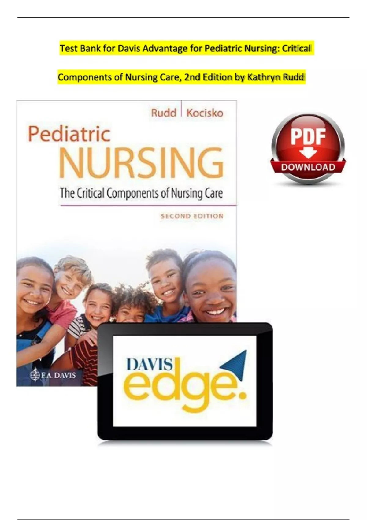 Test Bank Davis Advantage for Pediatric Nursing: The Critical Components of Nursing Care Second Edition by Kathryn Rudd ALL CHAPTERS COVERED GRADED A+