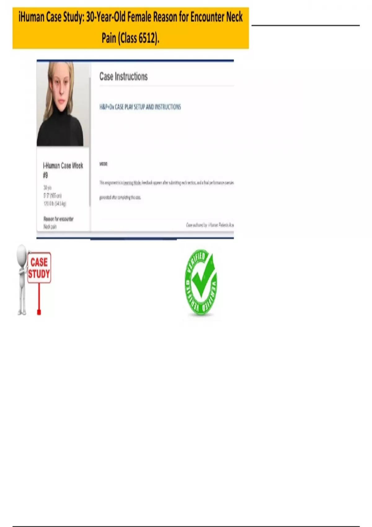 iHuman Case Study: (Neck Pain, 30-Year-Old Female) Week #9 Analysis – Walden University 2025