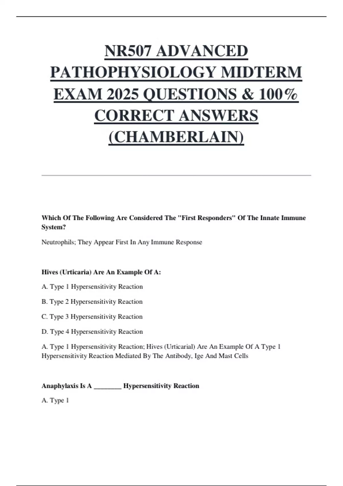 NR507 ADVANCED PATHOPHYSIOLOGY MIDTERM EXAM 2025 QUESTIONS & 100% CORRECT ANSWERS (CHAMBERLAIN)