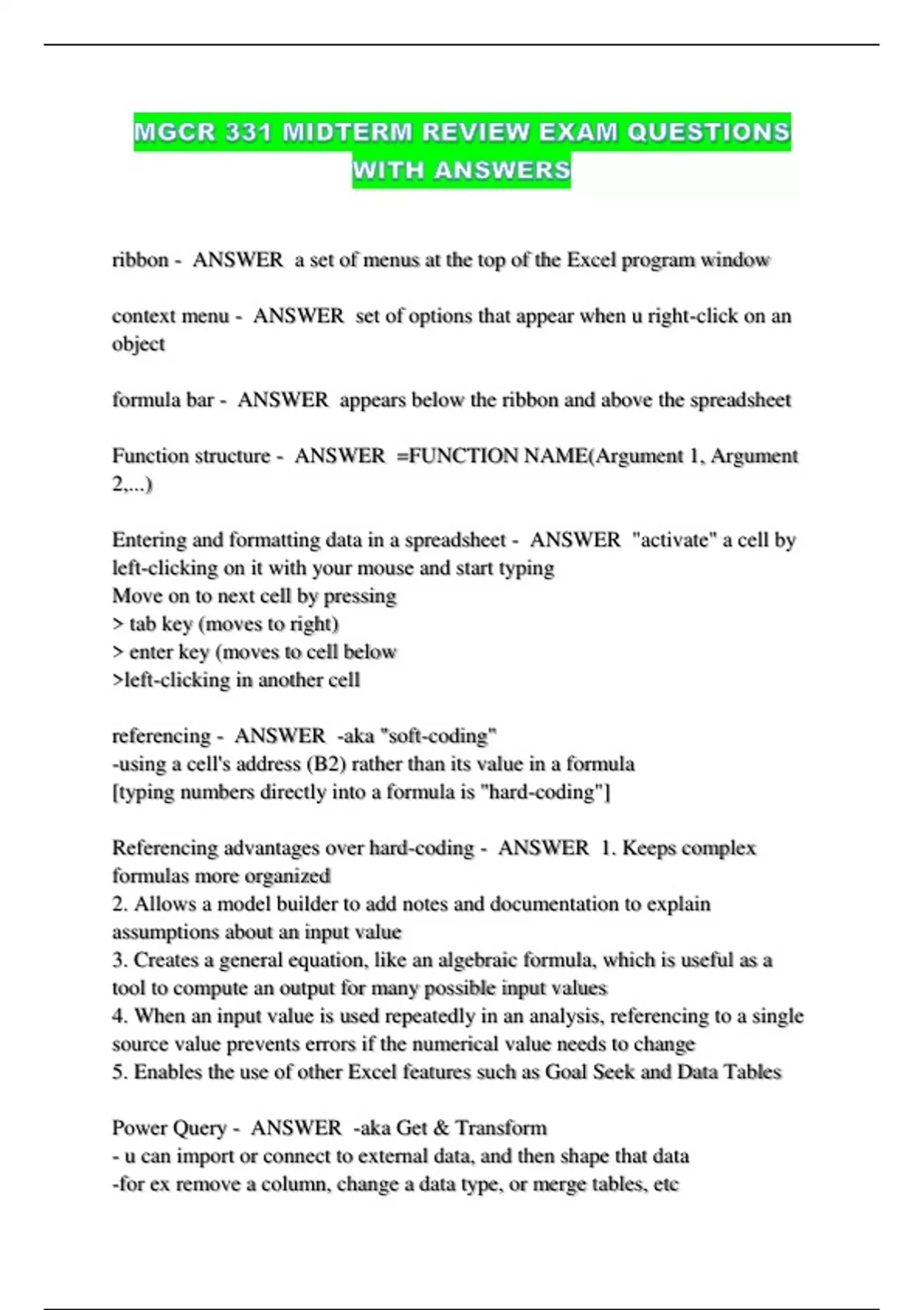 MGCR 331 MIDTERM REVIEW EXAM QUESTIONS WITH ANSWERS