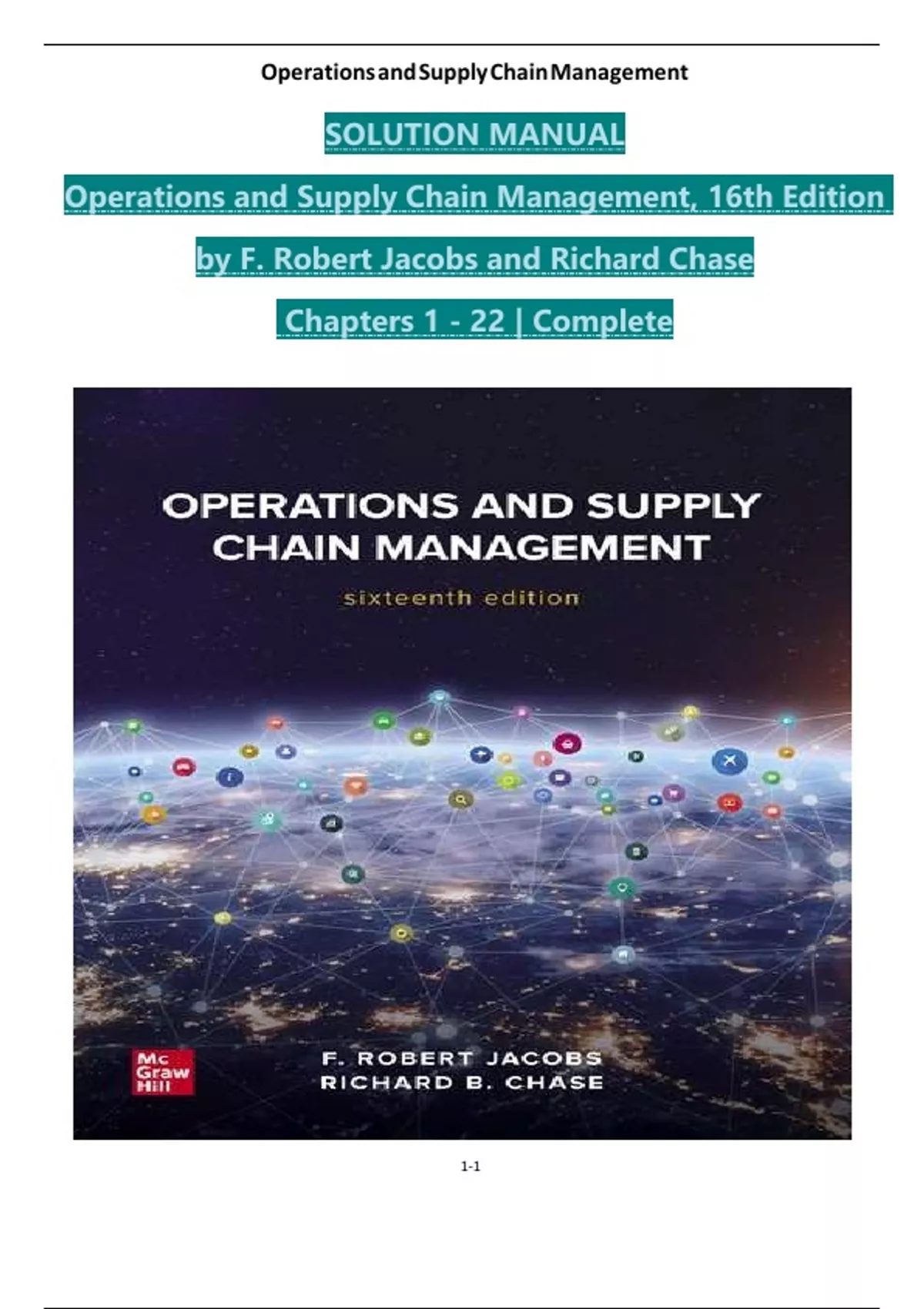 Solution Manual For Operations and Supply Chain Management, 16th Edition by F. Robert Jacobs and Richard Chase, Verified Chapters 1 - 22, Complete Newest Version