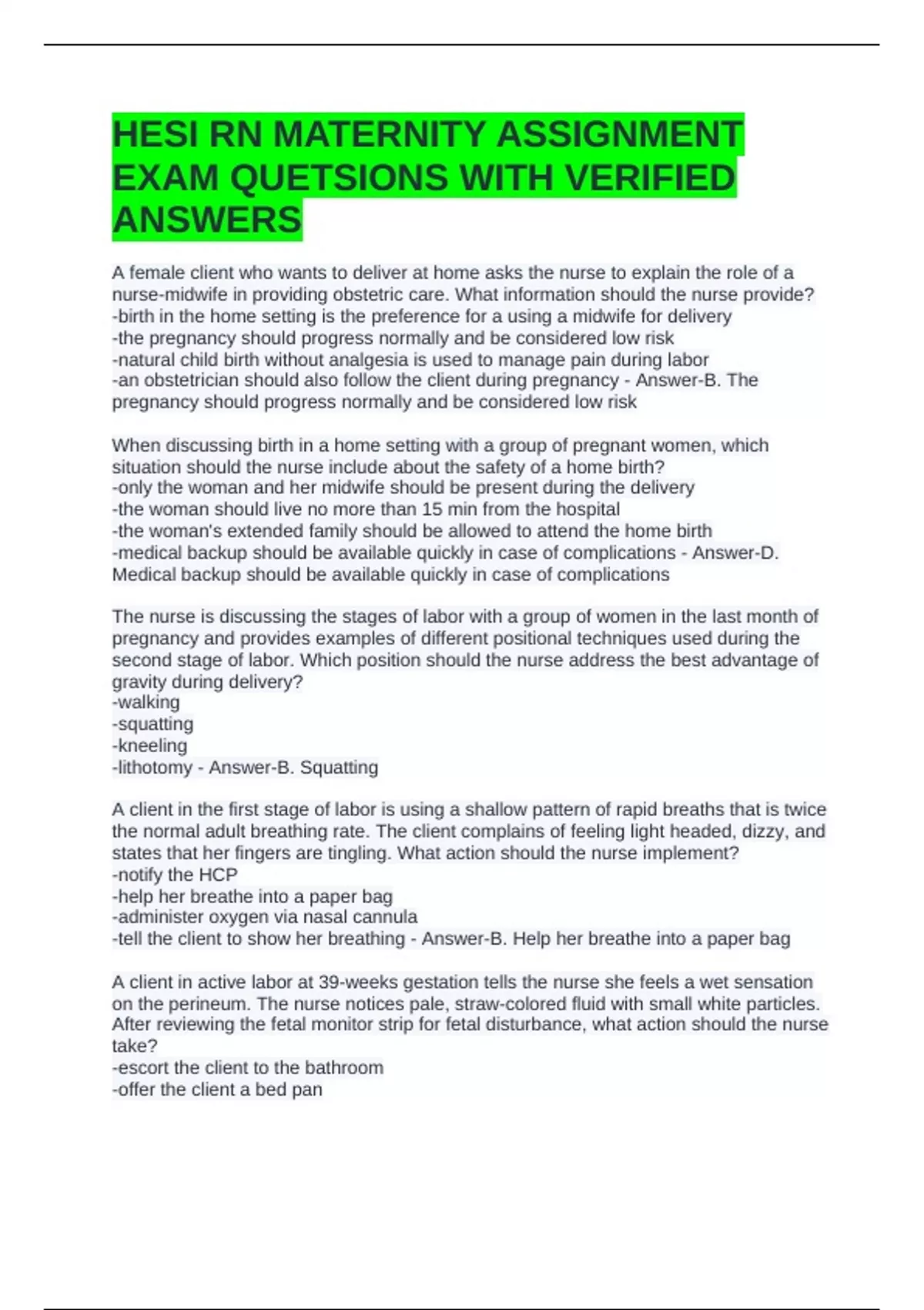 HESI RN MATERNITY ASSIGNMENT EXAM QUETSIONS WITH VERIFIED ANSWERS