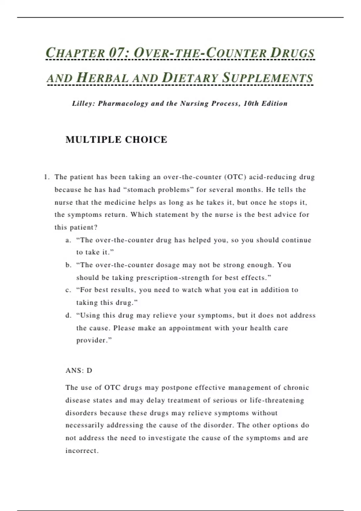 1. The patient has been taking an over -the-counter (OTC) acid -reducing drug
