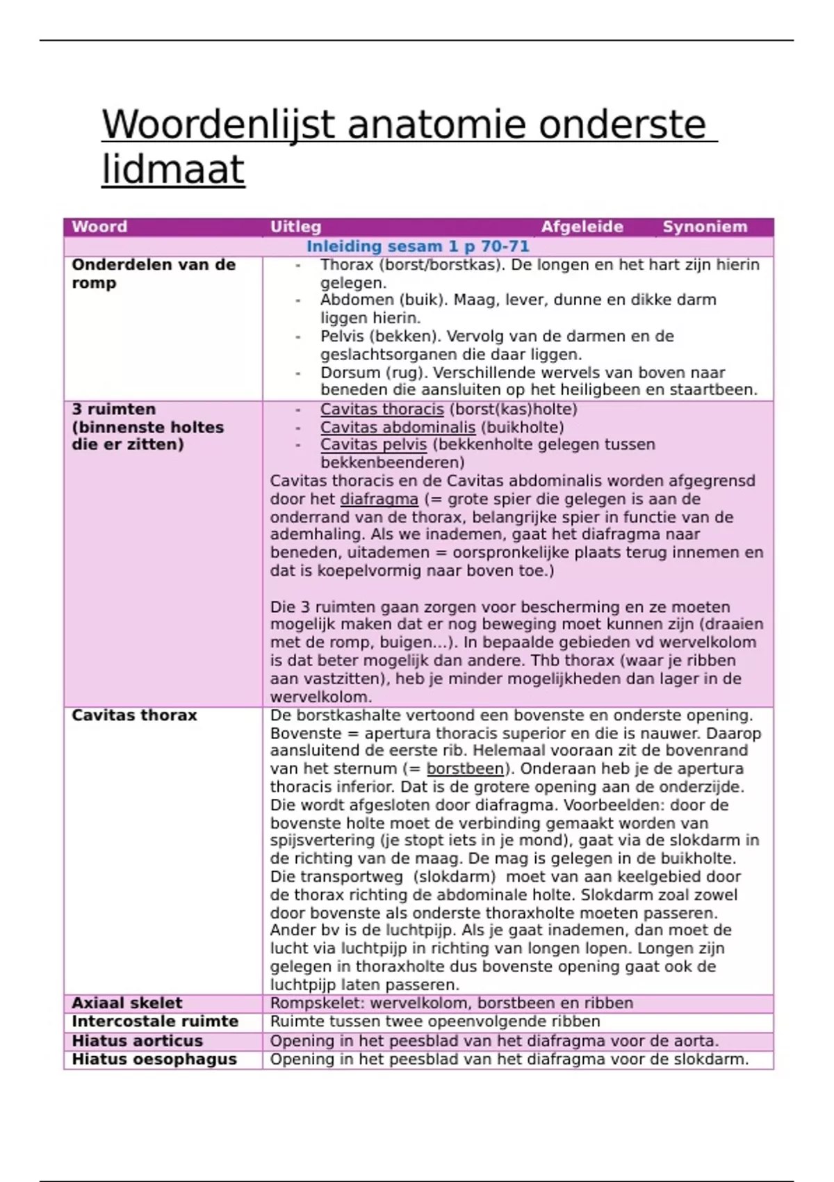 Samenvatting Anatomie van de romp en onderste lidmaat
