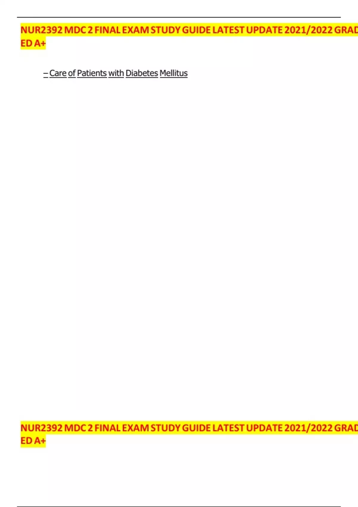 NUR2392 MDC 2 FINAL EXAM STUDY GUIDE LATEST UPDATE 2021/2022 GRAD