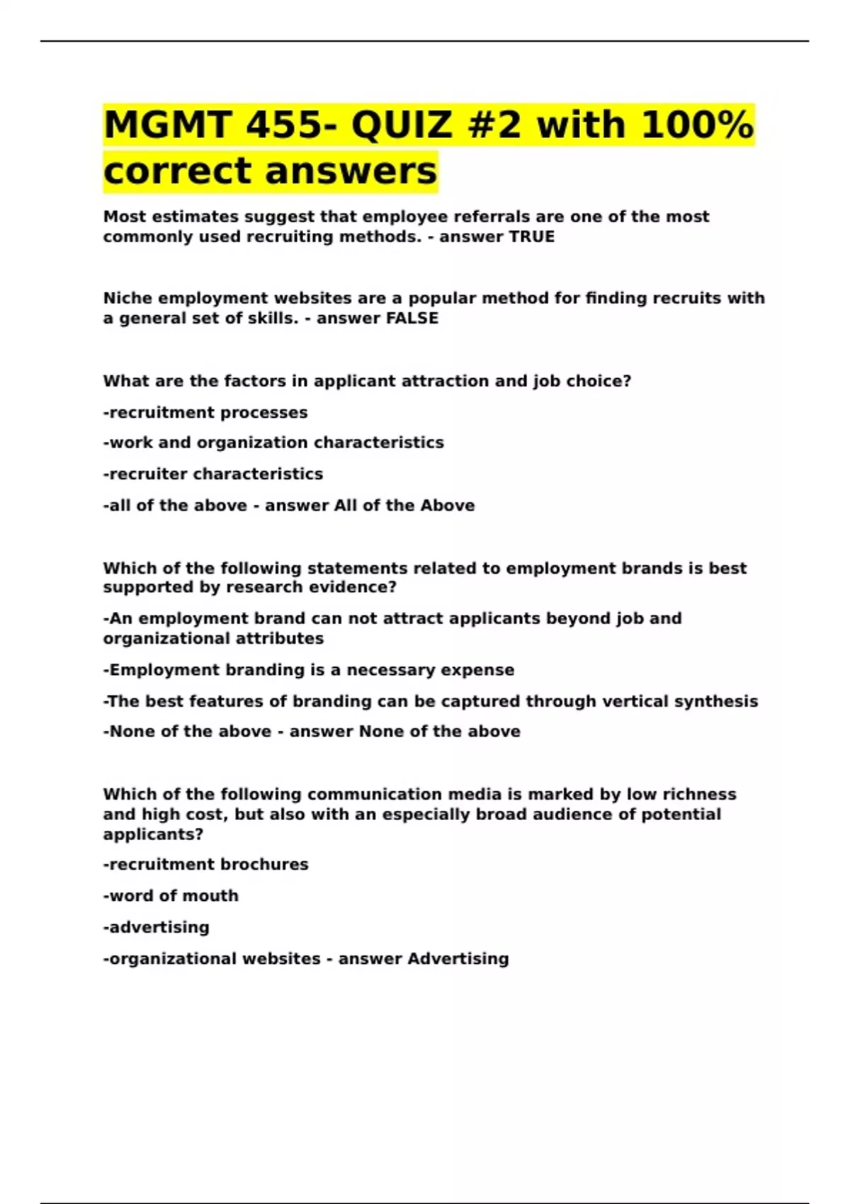 correct answers