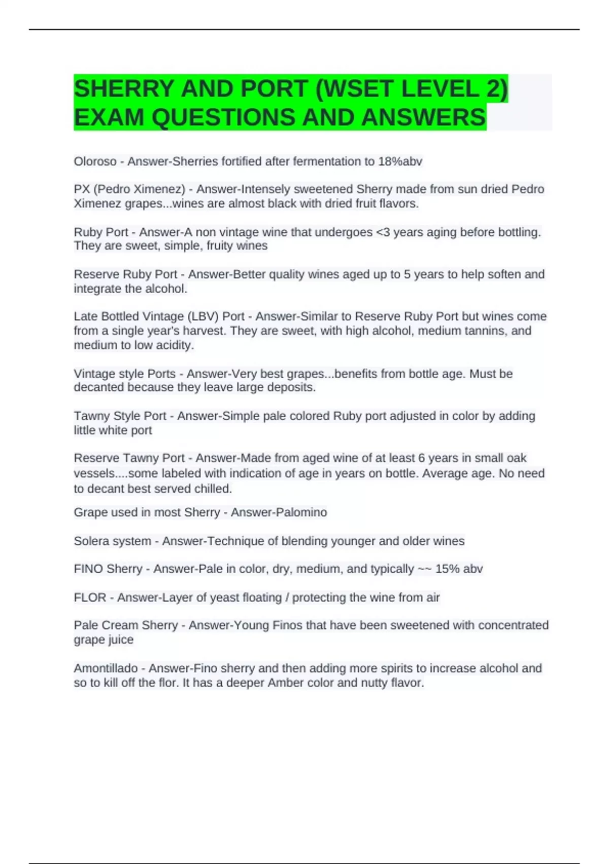 Oloroso - Answer-Sherries fortified after fermentation to 18%abv