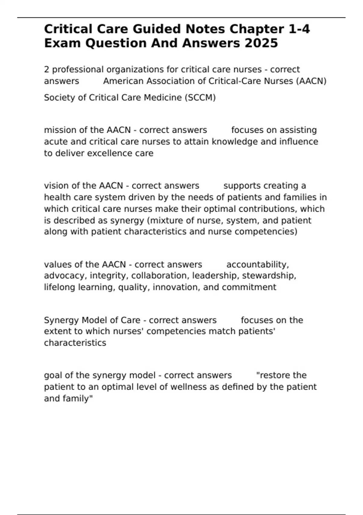 answers ✅✅American Association of Critical-Care Nurses (AACN)