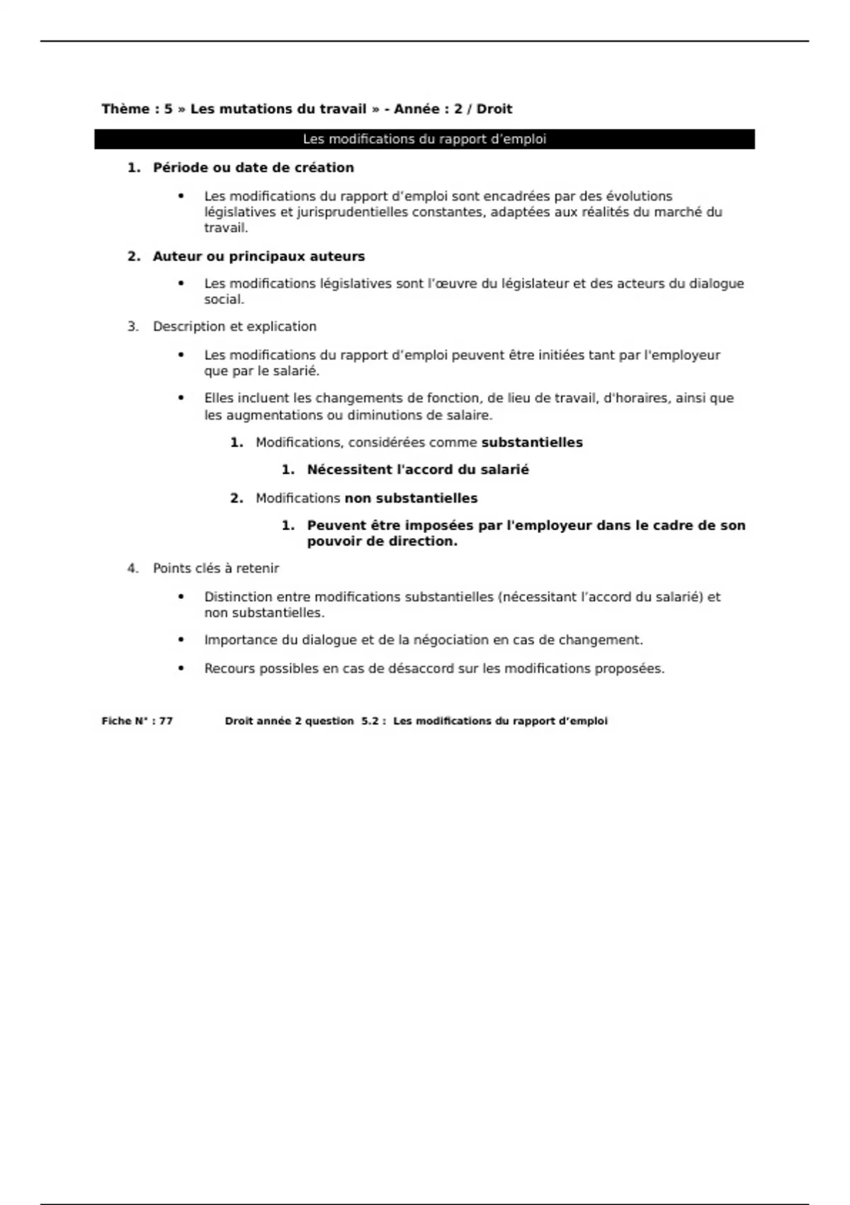 Fiche N° : 77 Droit année 2 question 5.2 : Les modifications du rapport d’emploi